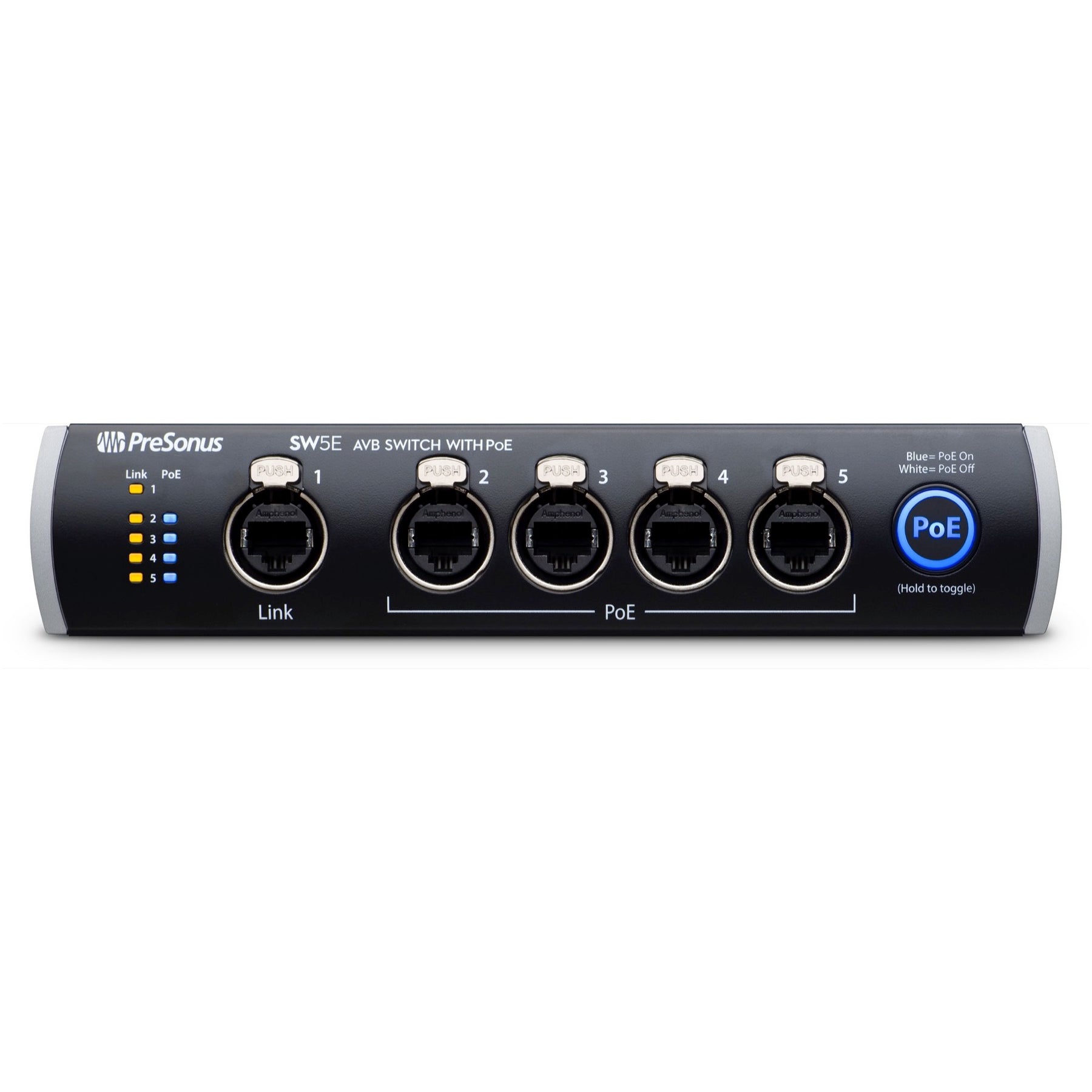 - 5 AVB Ethercon jacks- 4 ports with PoE