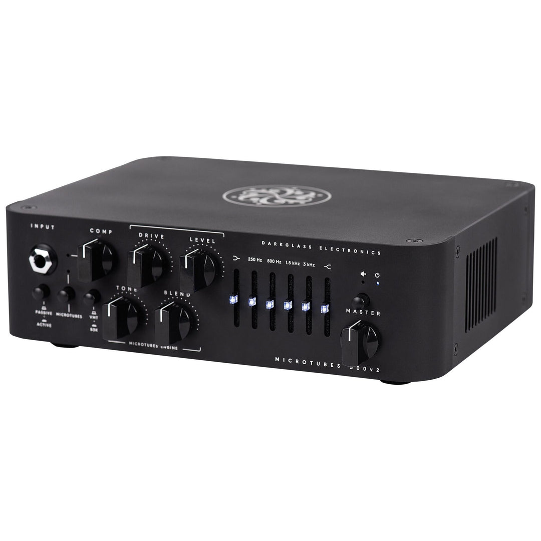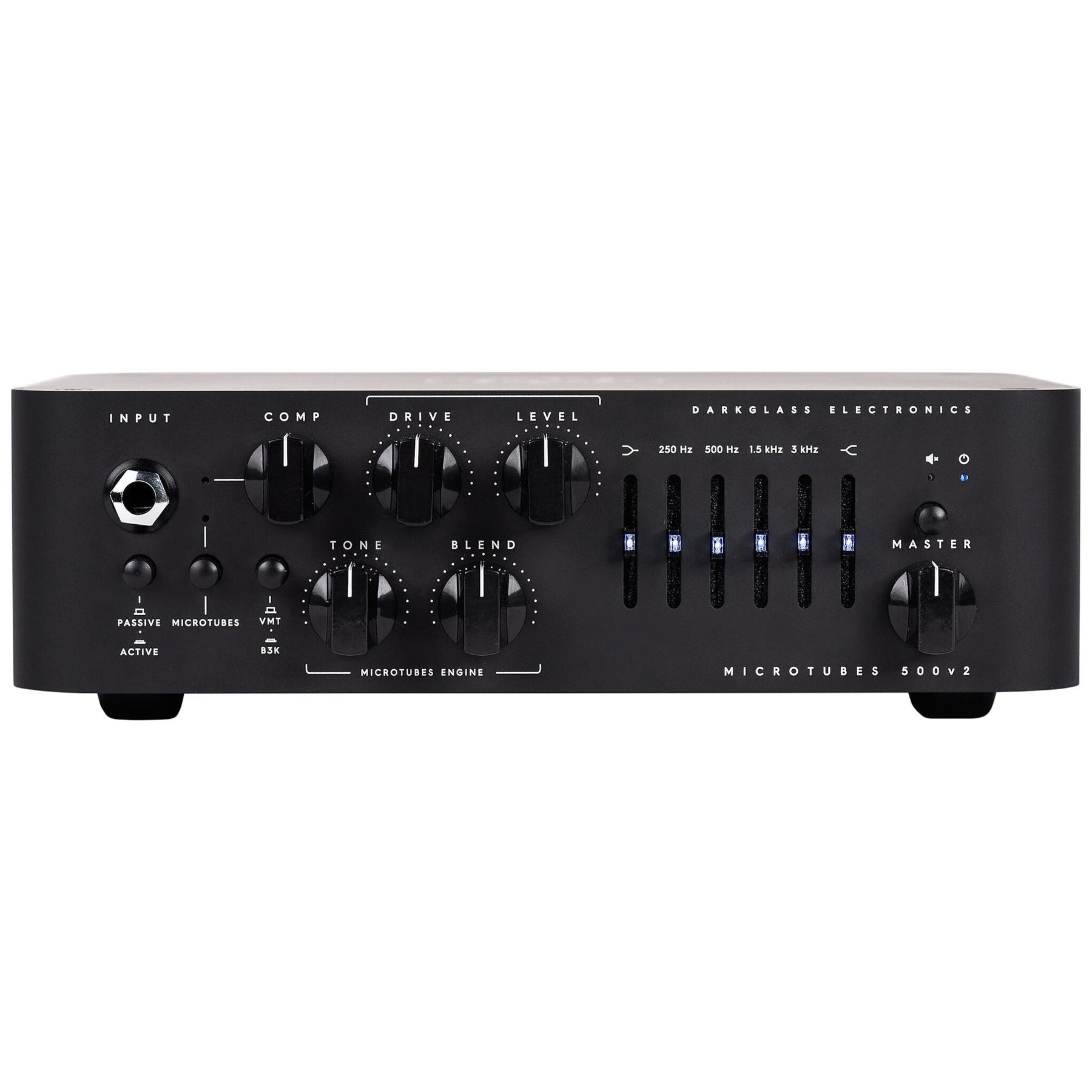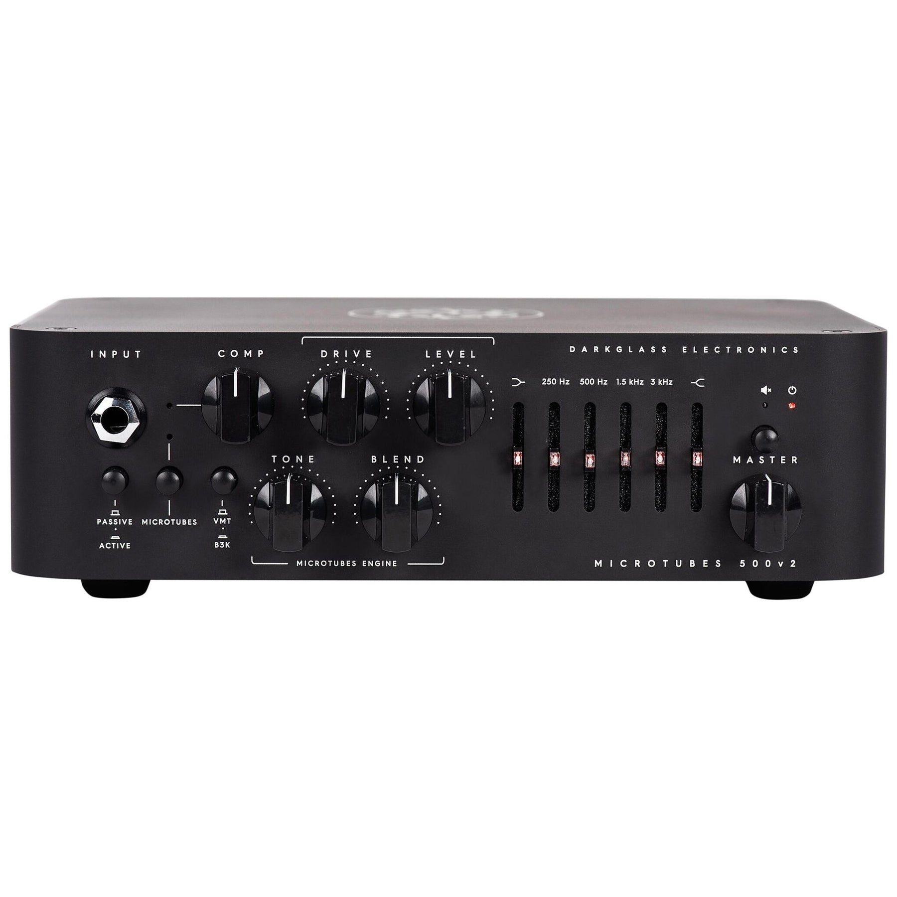 The Microtubes 500v2 bass head uses the Microtubes and Vintage Microtubes engines to deliver a wide variety of classic and modern tones. The Microtubes 500v2 bass head distill the power and sound of the popular 900 watt Darkglass amps to a smaller size. With the instantly recognizable sleek Darkglass design on the outside, the M500V2 packs a real punch on the inside, despite their seemingly inconspicuous size.