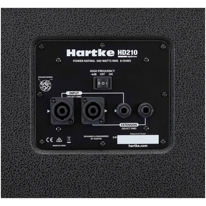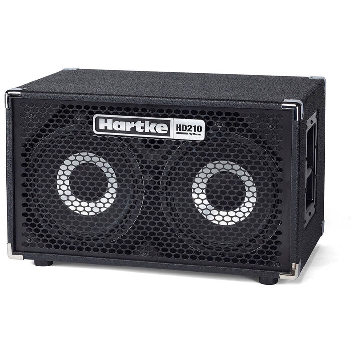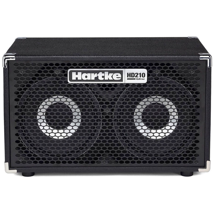 The HyDrive HD210 is a sealed cabinet constructed from solid plywood with extensive bracing and dado joints, making it rigid, yet lightweight for superior projection and minimal energy loss. In addition, the HD210 is furnished with a black perforated steel grill, recessed steel handle and steel corners, making it both resilient and easy to transport.Hartke's HyDrive HD210 is the next step in speaker evolution. Compact and lightweight, this dual 10" bass speaker cabinet is perfect for the working bass player. On its own, or part of a stack, the 500-watt HD210 delivers a full sound stemming from Hartke's patented HyDrive HD paper/aluminum hybrid cone speakers.The HyDrive HD speaker design features a 2-piece composite cone that merges a straight anodized aluminum inner cone with a curved, Kevlar-loaded paper outer cone that delivers clean, clear output with an extremely smooth response. The double-roll curvilinear surround limits the driver from over excursion, while providing a smooth midband response. The result is a clean, full tone with the clear fundamentals of each note, as well as natural overtones to further define your sound. Additionally, a round wire voice coil and vented former design has been incorporated to provide a nice low-end zing and that optimizes power handling.