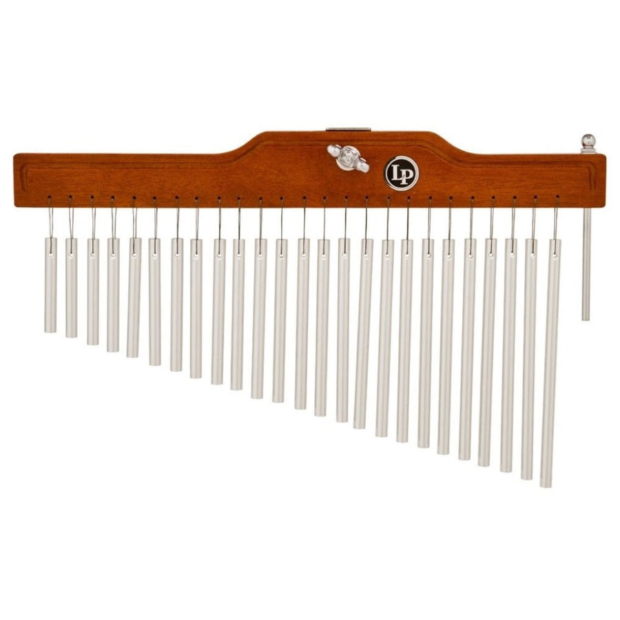 LP Studio Series bar chimes are great for studio use or where shorter sustain and added control are desired. They feature 3/8-inch diameter, gold-anodized, aluminum alloy chimes that are strung with genuine Kevlar cord for added strength. A bar chime striker is included and fits conveniently into a storage slot in the top wooden bar.