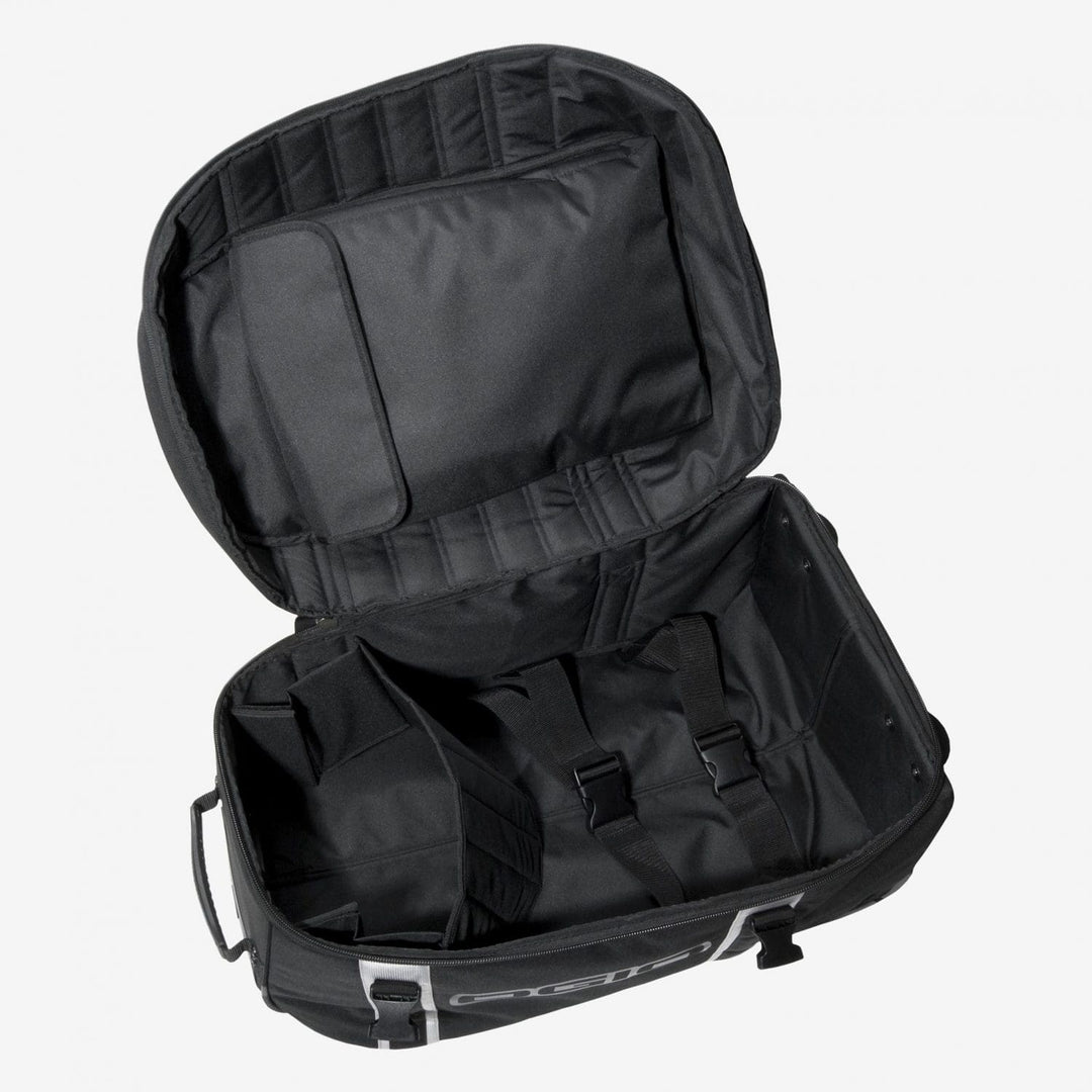 Full sized wheels and a plastic skid plate help this sled slide easily across any even surface.
