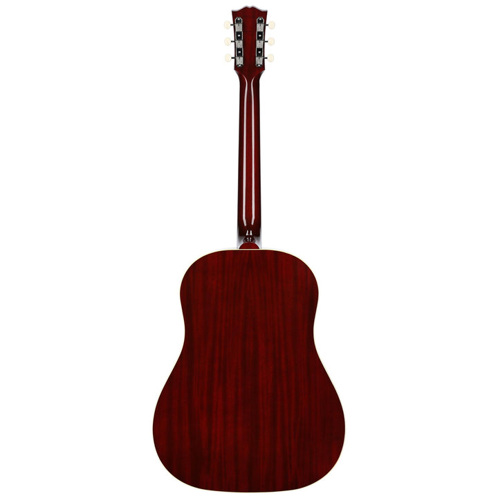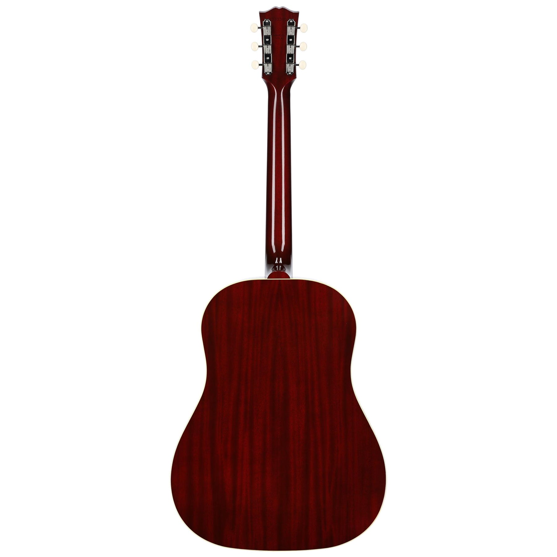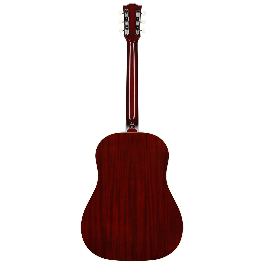 When you listen to a Gibson round-shoulder acoustic, you will notice that it responds exactly to the player's style and technique - powerful one moment, soft and mellow the next. This 60s J-45 Original offers a period-correct 1 11/16" nut width, allowing for comfortable fingering in any position along the mahogany neck. The easily-adjustable saddle can be fine-tuned to players' unique string action preference. The 60s J-45 Original features double antiqued binding, Grover strap cream button tuners, and the famous white pickguard with hot stamp logo.