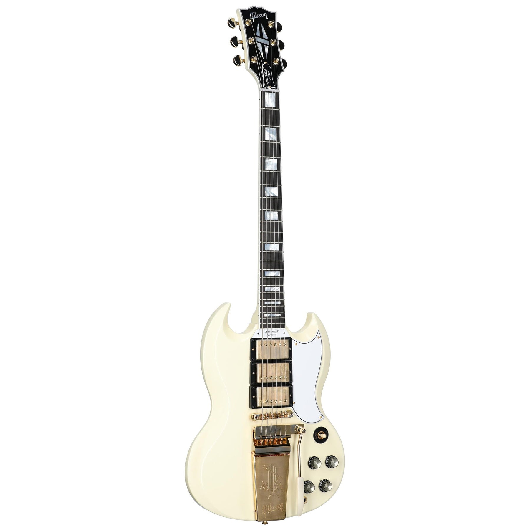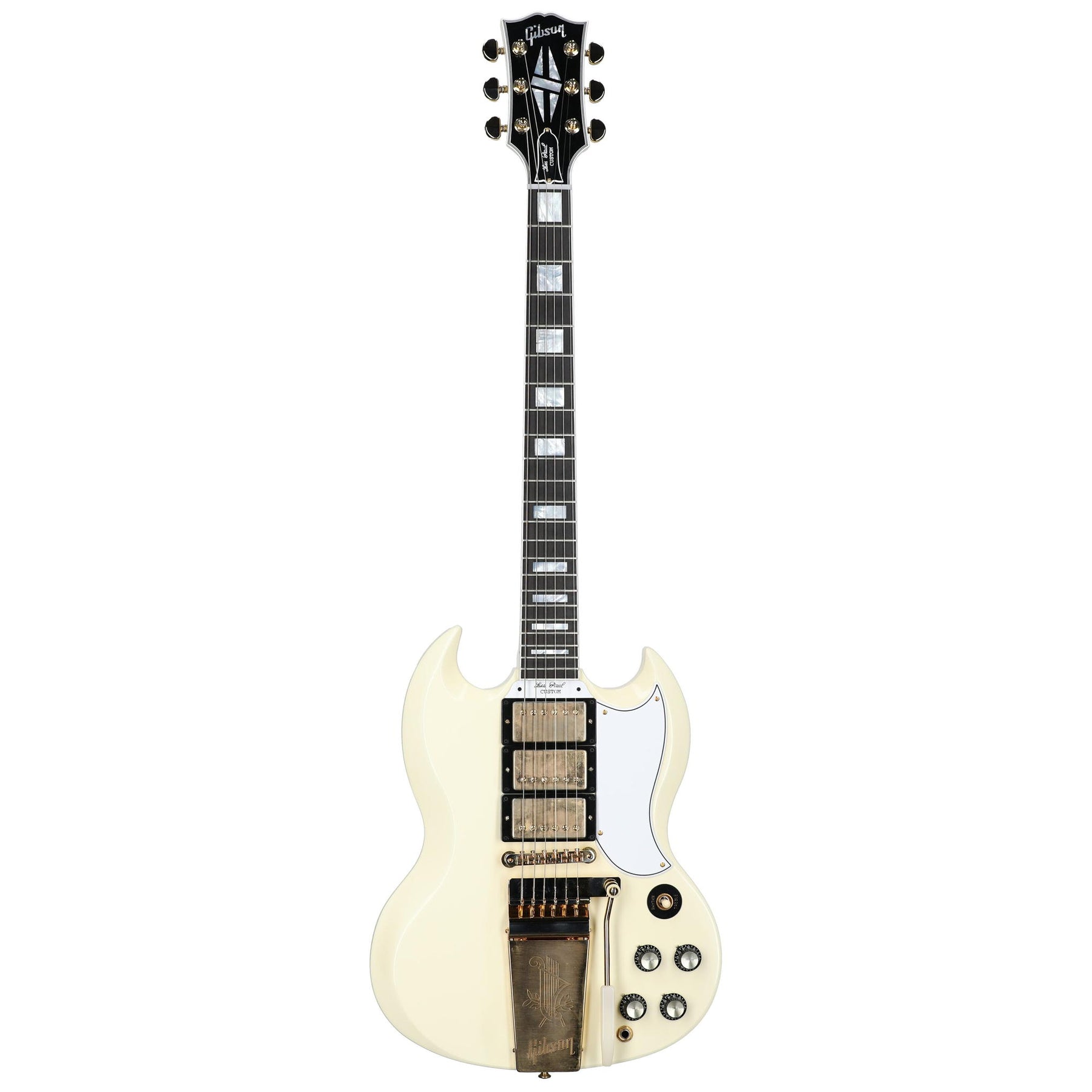 The last year of the "Les Paul" moniker on the SG Custom was also the first year of the Maestro Vibrola...1963. Gibson Custom Shop has proudly recreated this desirable version of the SG Custom down to the original construction methods and contours. The result is a beautiful, versatile and tremendous-sounding instrument that plays effortlessly. The solid Ebony fingerboard and revamped vintage-style electronics help it attain new sonic heights with clarity and sustain. From the dimensions to the contours to the precise inlay patterns to the sonic experience, it's the top of the line SG in every respect!