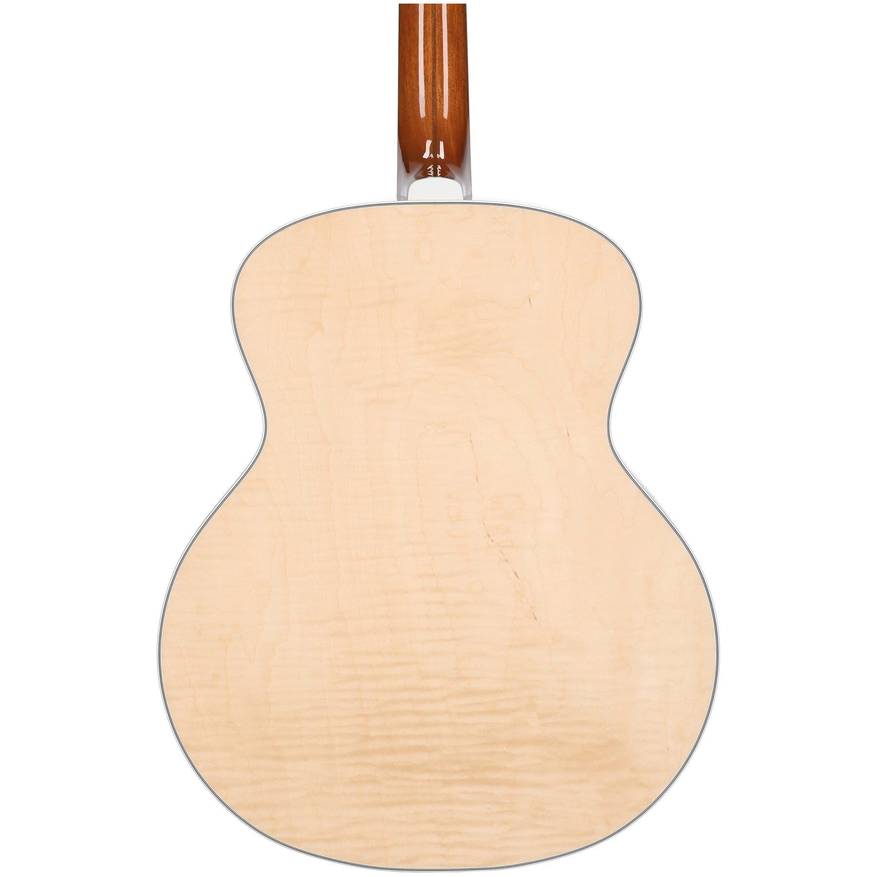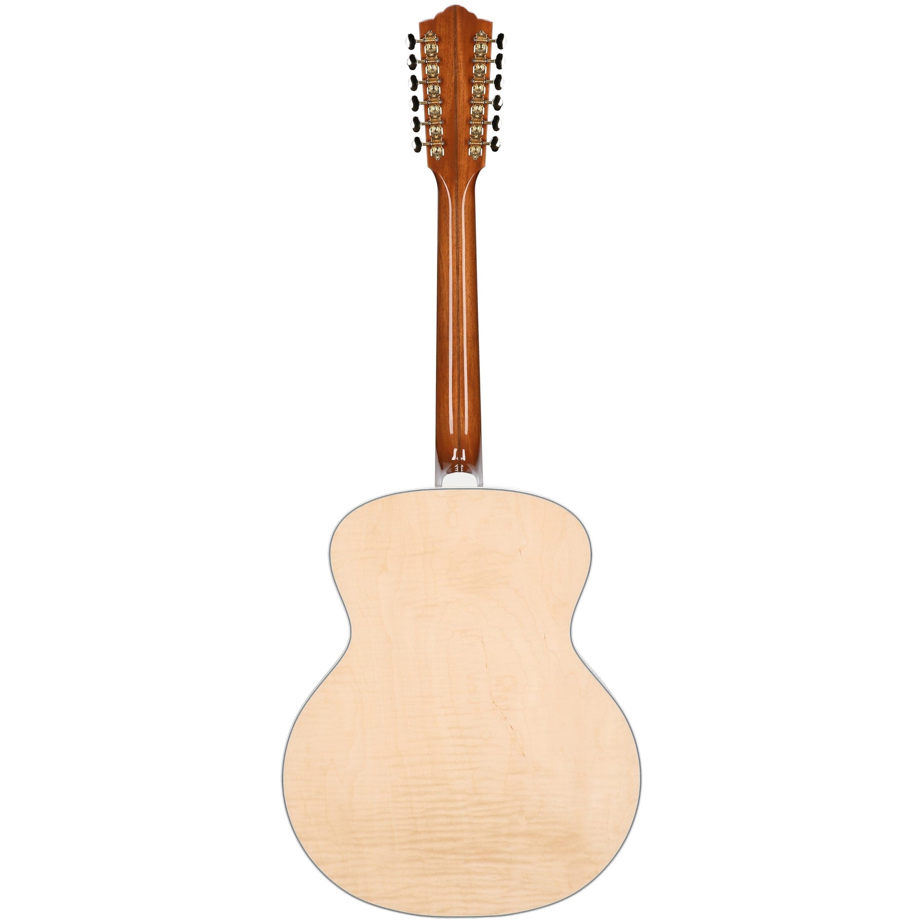 The Guild F-512E Jumbo Maple is back and better than ever. This USA-made jumbo has been a staple of the Guild line since the late 1960's. It features a tight grained solid Sitka spruce top with arched flamed maple back and flamed maple sides. Created on the same arch press that's been a part of Guild manufacturing since 1985, the F-512 Maple provides sharply focused trebles and an articulate mid-range, perfect for a full, centralized, harp-like sound. Braced with delicate, scalloped Adirondack spruce, this model produces the shimmering highs that players have come to expect from a Guild 12-string. Elegant cosmetic appointments include the classic Guild “V-block” inlays, gold Gotoh hardware, and a beautiful Nitrocellulose lacquer finish. Exceptional build quality and premium specifications make it a worthy heir to the historic Guild 12-string legacy. LR Baggs electronics included.