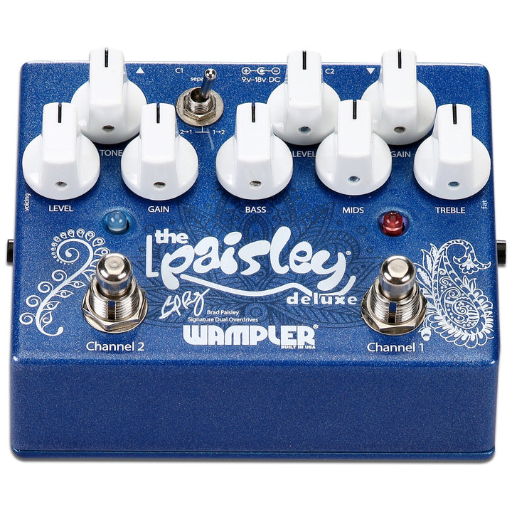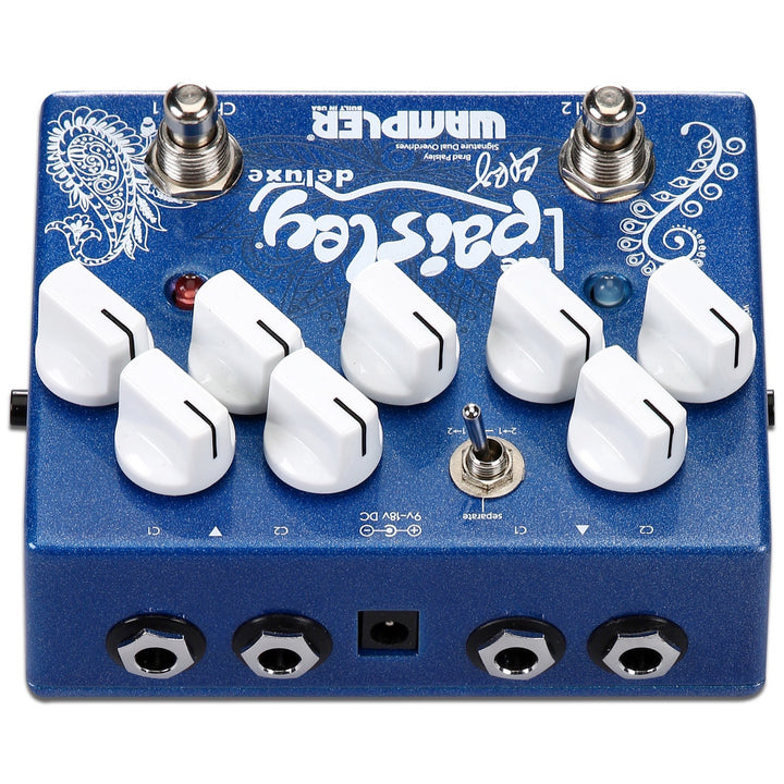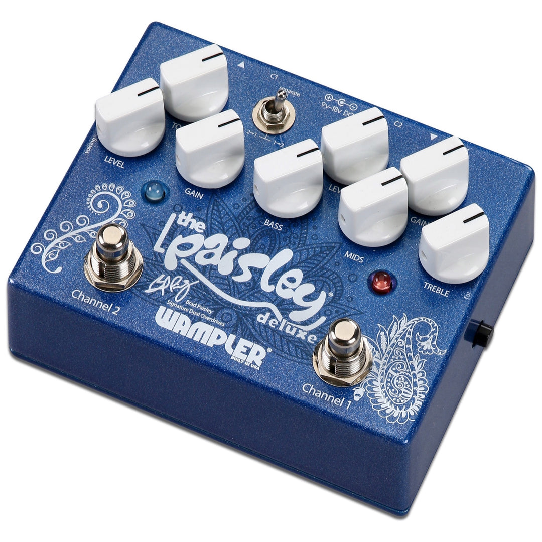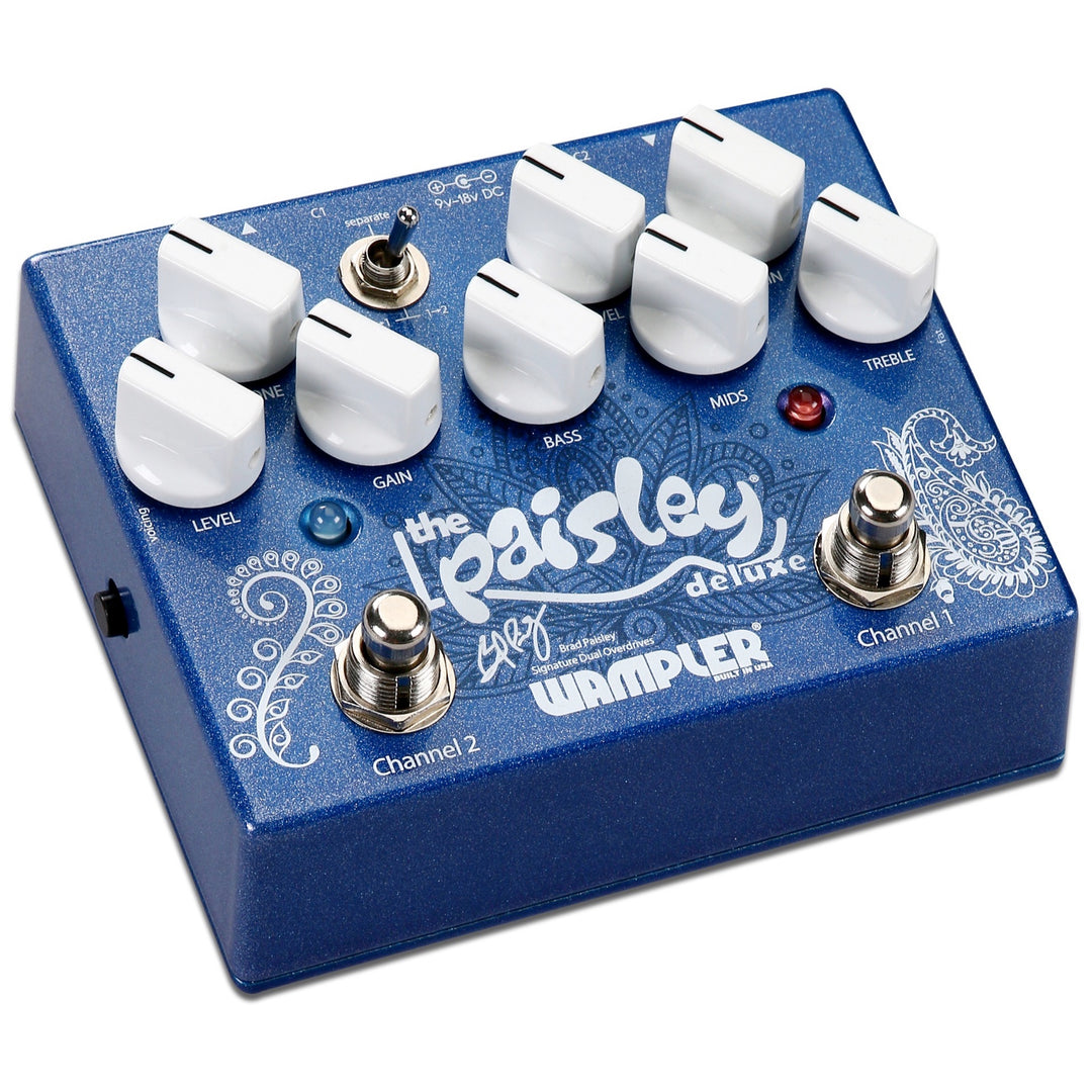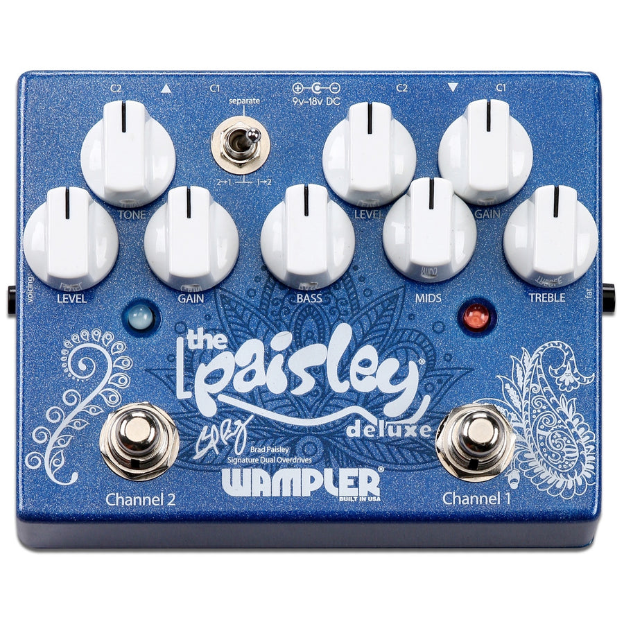 Brian Wampler's attention to detail and commitment to designing the best and most player-friendly products out there are second to none. Those qualities are on full display within the Paisley Deluxe. From its convenient top-mounted jacks to its amazingly flexible switching, the Paisley Deluxe dual overdrive pedal is every bit a Wampler.
