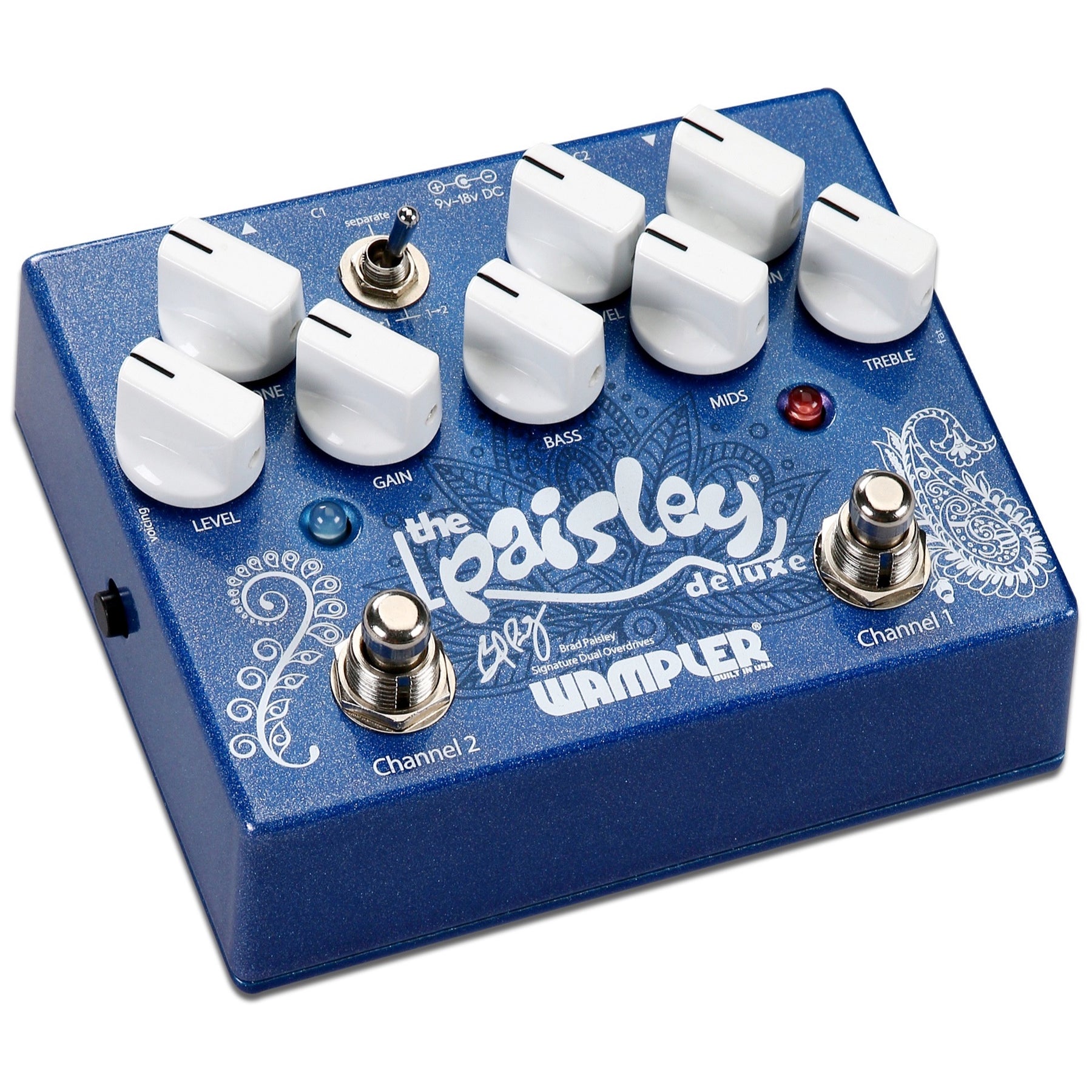 To integrate with today's super-powerful pedal switchers and MIDI-based rigs, Wampler outfitted the Paisley Deluxe with the ability to route your signal to each channel individually. With a simple stomp of your programmed switcher, you're able to pull up either channel or a blend of both. It truly is like having two Brad Paisley-approved overdrive pedals in one box.\t- Independent in and out jacks for each channel