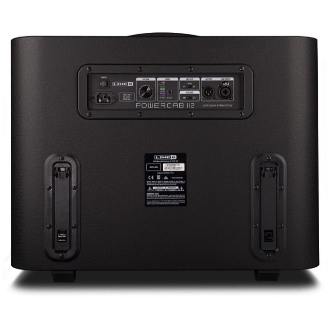 - using a new technology developed by Line 6. Simply bypass the speaker cabinet models in your modeler's signal chain and let Powercab 112 provide the sound and feel of playing through those classic speakers.The Powercab 112 guitar speaker system accomplishes this by combining a clean 250-watt power amplifier with a custom hybrid coaxial speaker. The speaker combines the range, clarity, and power-handling capabilities of a PA speaker, with the rapid transient response of a guitar speaker, in just the right measure to function optimally in both Flat and Speaker Modeling modes. And Powercab 112 is loud, producing a room-filling 125dB SPL maximum volume. In addition to sounding and responding like a true guitar cab, the Powercab 112 guitar speaker system also looks like one. Sturdily constructed of plywood, with a unique curved back that adds rigidity and decreases weight, Powercab 112 weighs a gig-friendly 35 pounds (16 kgs). And a flip-out kickstand allows it to be angled toward the performer, whether used in the backline or as a frontline monitor.