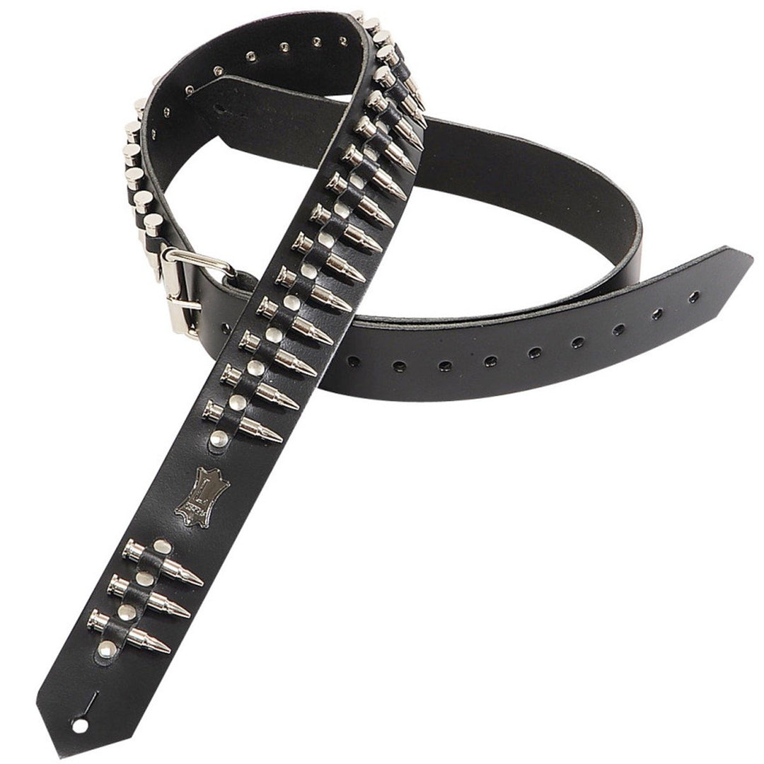 Levy's PM28-2B Leather Guitar Strap, Black Bullets