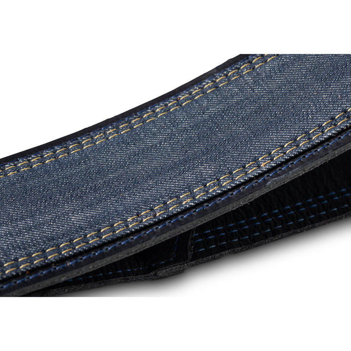 The Taylor Blue Denim guitar strap is charged with American tradition, featuring a combination of classic blue denim fabric and genuine navy leather. A perfect fit for any guitar, this 2.5" strap provides comfortable support on the shoulder with enough freedom to let you move while you play. Its timeless aesthetic is finished off with an embossed Taylor logo on the leather ends.