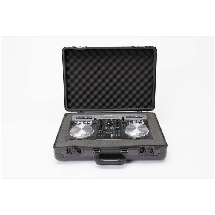 The Magma CARRY LITE DJ-CASE L is a very lightweight and compact carrying solution for your DJ-equipment and comes in a nice full-black matt finishing. Constructed from laminated MDF panels and anodized aluminum profiles the CARRY LITE design features a fully padded interior with a variable pick & pluck foam that allows to create individual adapted compartments for various-sized DJ-controllers such as Pioneer DDJ-SB2, NI Kontrol S2, Denon MC-3000 or most Hercules DJ-controllers. The pick & pluck foam consists of two separate layers providing the additional option to create another slot underneath the controller for laptop or cable storage.XL Plus: