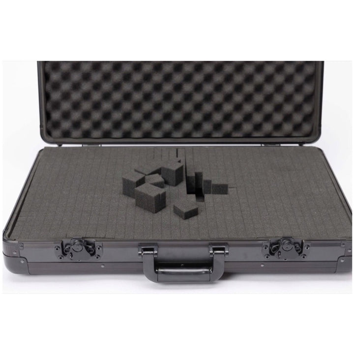 The CARRY LITE DJ-CASE XXL PLUS is a very lightweight and compact carrying solution for your DJ-equipment and comes in a nice full-black matt finishing. Constructed from laminated MDF panels and anodized aluminum profiles the CARRY LITE design features a fully padded interior with a variable pick & pluck foam that allows to create individual adapted compartments for various-sized DJ-controllers such as Pioneer DDJ-SX2, Denon MCX-8000, Denon MC-7000, Roland DJ-808 or similar-sized DJ-controllers The pick & pluck foam consists of two separate layers providing the additional option to create another slot underneath the controller for laptop or cable storage.Features