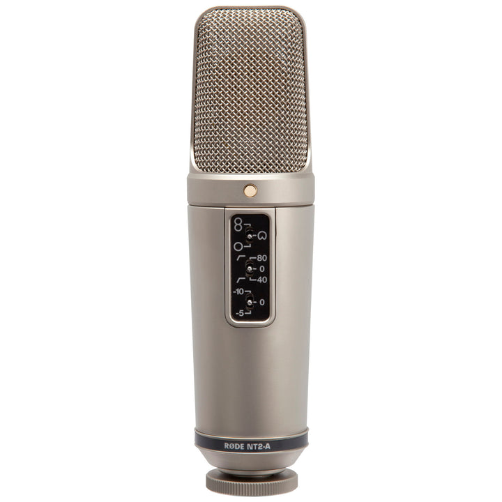 Dial in the sound you need with the three-position switches on the front of the NT2-A's body. Change between cardioid, omni, or figure-8 polar patterns, switch between a flat, 40 Hz and 80 Hz cuts on the high-pass filter, and alter the