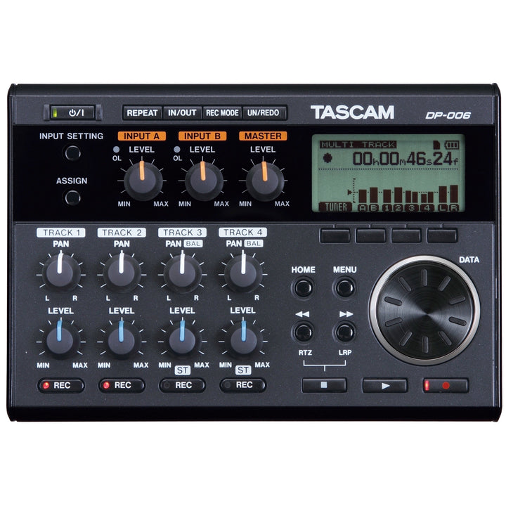 The DP-006 is built with two condenser microphones directly in the front of the unit. Record vocals or acoustic guitar anytime without the need for extra equipment or set-up time. TASCAM held many evaluation tests to secure the best sounding microphones and structures. Modeled after the top-selling DR series microphones, you can be assured you're receiving top-quality sound with each take. The DP-006 was also designed with a tripod mount for versatile set-up and placement.Simple and Easy-to-Use Interface -