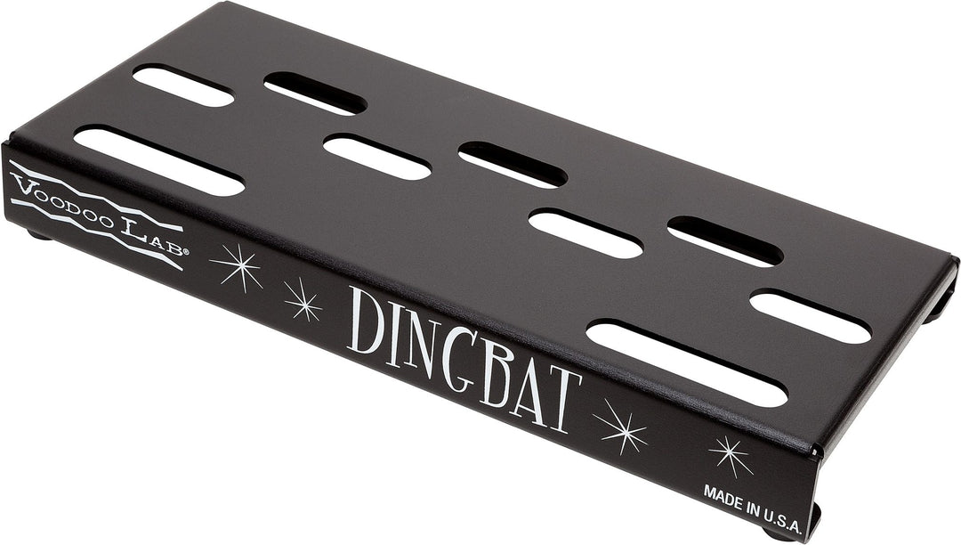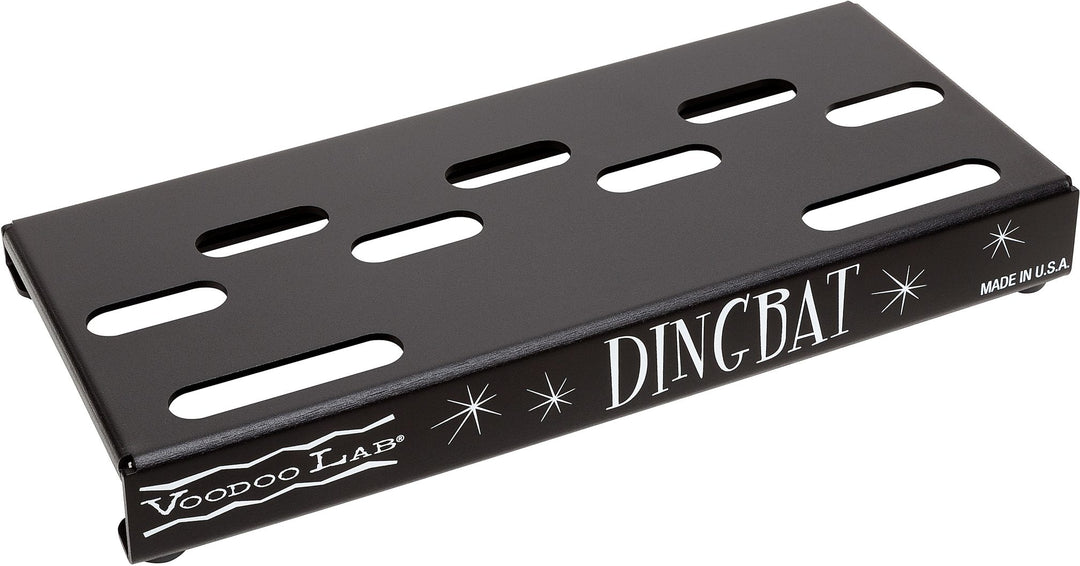 Keeping a clean and tidy pedalboard is an important element in executing a flawless performance. Dingbat’s innovative patent-pending design helps organize your rig like a pro and includes all the supplies needed for securing pedals and cabling to the board.Power Up