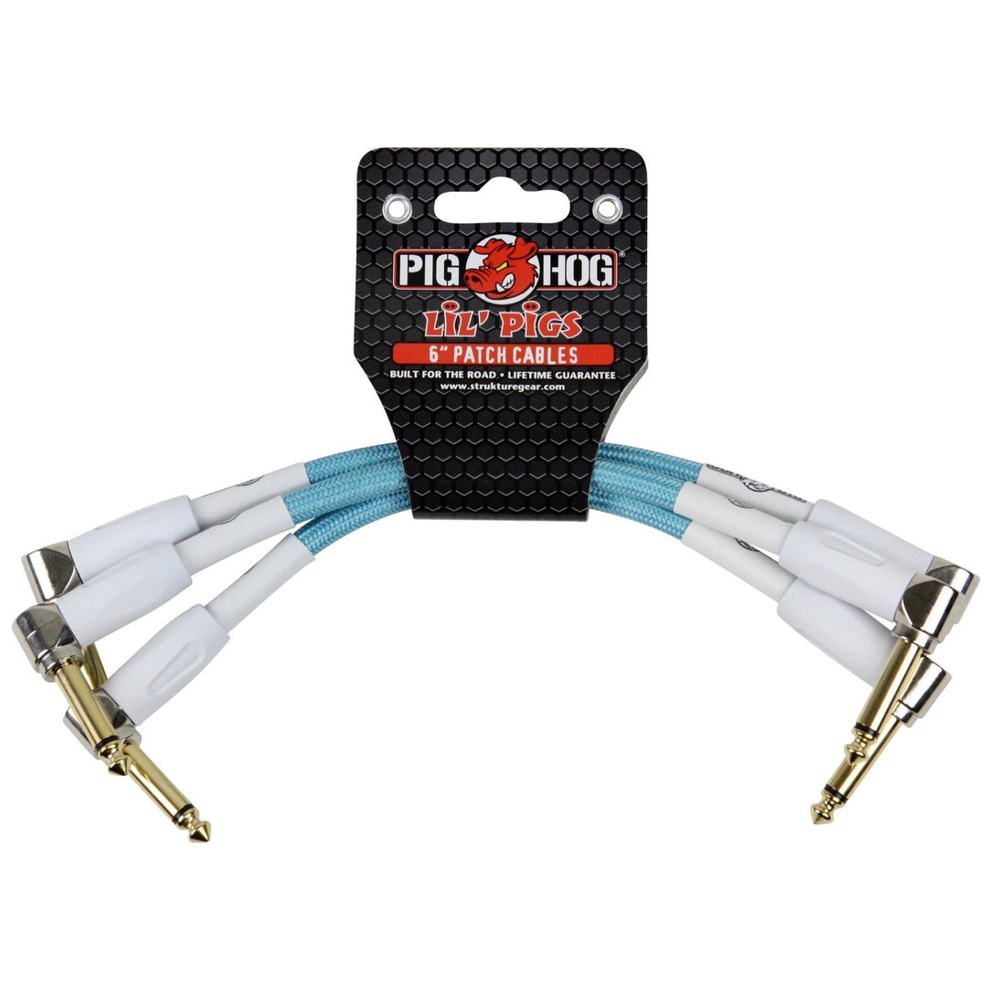 Pig Hog Lil Pigs Pedal Patch Cables, Daphne Blue, 3-Pack, 6 Inch
