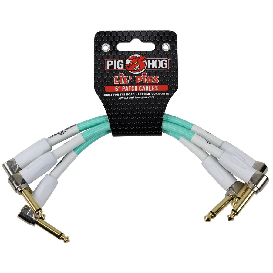 Pig Hog Lil Pigs Pedal Patch Cables, Seafoam Green, 3-Pack, 6 Inch