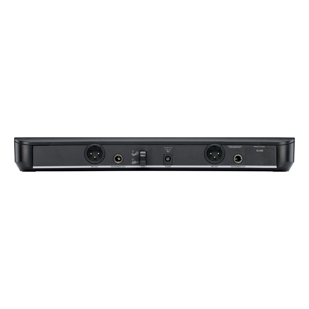 - BLX88 dual wireless receiver- 2 BLX2/PG58 handheld transmitters with integrated PG58 cardioid dynamic microphone capsuless