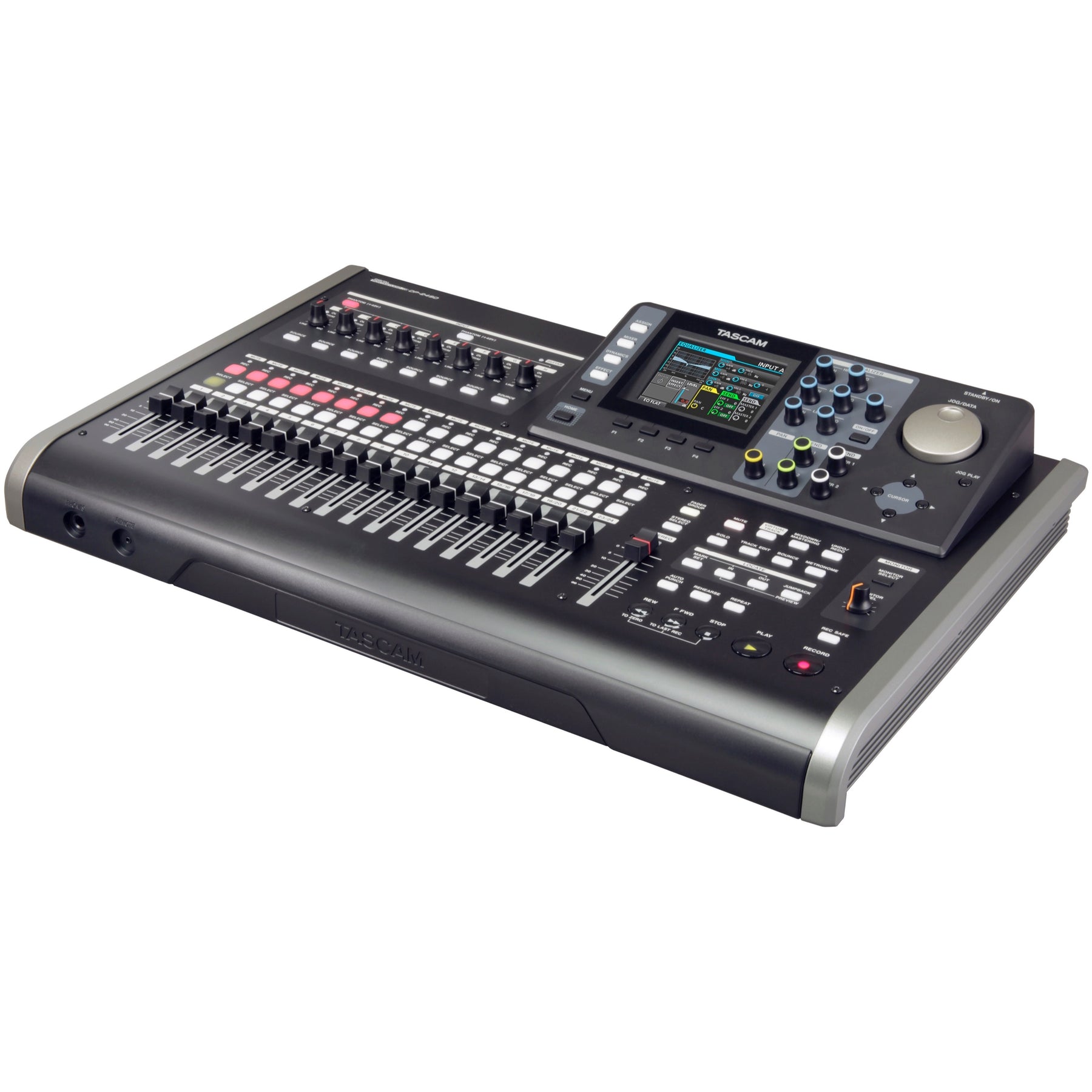 Tascam's DP-24SD Digital Portastudio records an unmatched 24 tracks to solid-state media. Up to eight tracks can be recorded at a time through its combination XLR and 1/4" combo jacks. Input processing like compression and limiting are available during recording, as well as guitar amp simulation and multi-effects for use with the instrument-level input. A color LCD and channel strip knobs make mixing fast and creative. With its great sound, powerful features and easy operation, the DP-24SD is Tascam's biggest Portastudio yet.