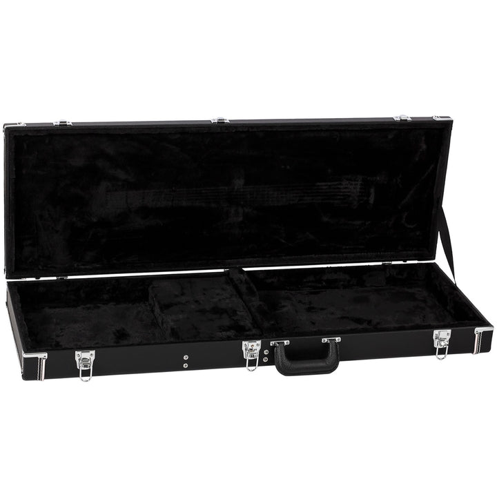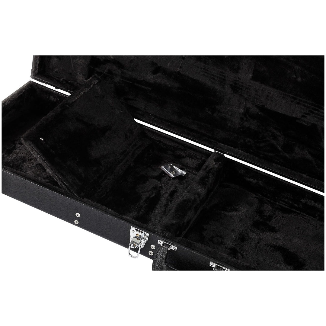 The Wylde Audio WA-OB1 Hardshell Electric Guitar Case is made of durable plywood and fits all Wylde Audio Odin, Odin Grail, and Barbarian guitars. It has a Tolex covering with chrome-plated drawbar latches (one locking), and a plush, padded interior with an accessory storage compartment.