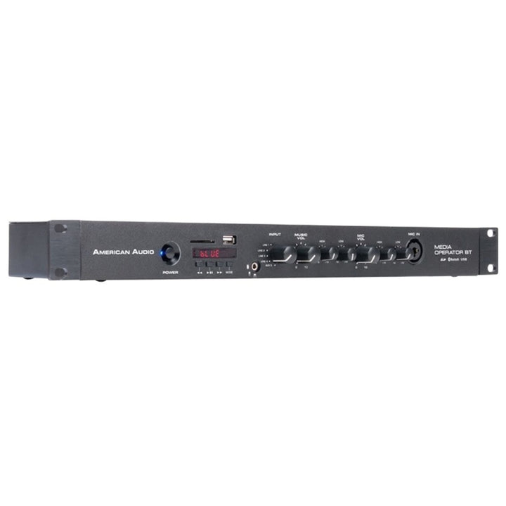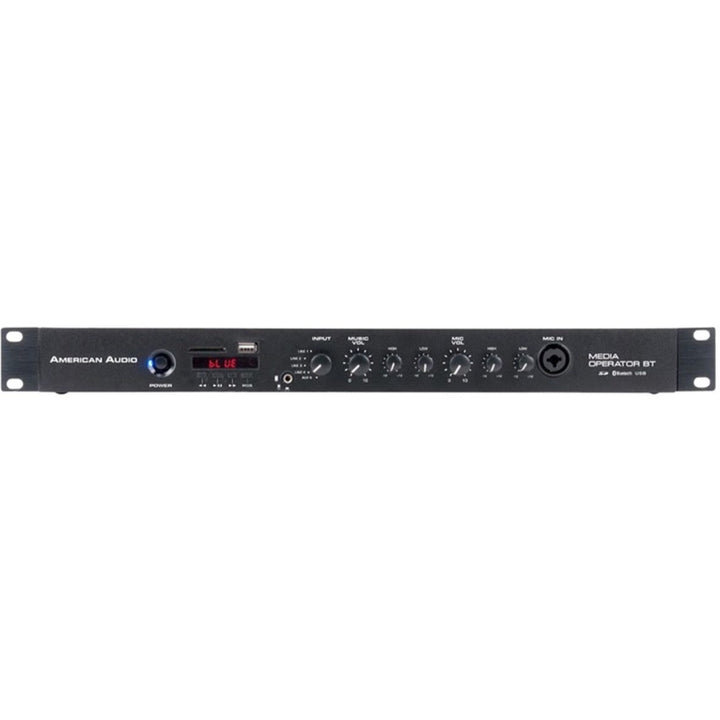The American Audio Media Operator BT is a fast, simple and reliable all-in-one MP3/Bluetooth media player designed for permanent installations where easy control of music is a must (ie. restaurants, fitness studios, retail locations, etc.) and great for mobile entertainers as well. The Media Operator BT offers digital playback from SD cards or USB sticks/drives.The Media Operator BT includes full MP3 playback control as well as a microphone input (XLR / 1/4' combo), master volume control and 3x line output options. Plug the unit directly into powered speakers, an amplifier or secondary mixer through the balanced XLR, 1/4" or stereo RCA outputs.