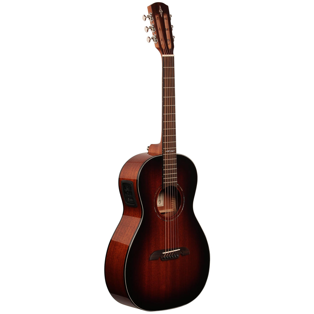 Looking for small-bodied acoustic that just oozes 1920s vintage vibe & tone with modern playability and intonation? Look no further than the AP66ESHB from Alvarez.True to its roots, the AP66ESHB is a 12-fret parlor guitar with a slotted headstock. Unlike many smaller-bodied acoustics, its quarter-sawn, hand-sanded scalloped bracing is placed slightly forward (towards the soundhole) which allows the solid spruce top to resonate more freely. The result is an extremely strong, clear, articulate voice, with an incredible string-to-string balance that lends itself well to both fingerpicking and flatpicking, in standard or alternate tunings.The brilliant high-gloss finish really shows off the beauty of the rosewood back & sides, as well as the rosewood headstock overlay. The LR Baggs Element pickup and Stage Pro EQ gets all your tone into the PA or onto the tape. Throw in a genuine bone nut & saddle, a killer factory setup, and a fit & finish that is unheard of at this price, and the AP66ESHB just might wind up being your new favorite!
