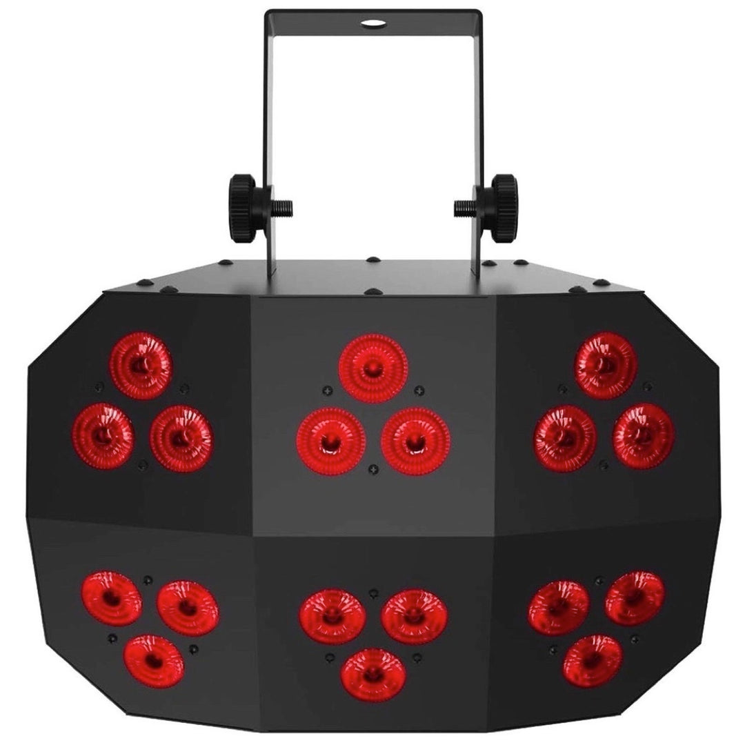 The Chauvet DJ Wash FX 2 is a multi-purpose effect light with 18 Quad-color (RGB+UV) LEDs that can be used as a regular wash light or eye-candy effect with 6 chasing zones. Powerful UV LEDs create a psychedelic blacklight effect and provide brilliant color-mixing capabilities. Wash FX 2 can be controlled with the IRC6 wireless remote for wireless triggering or in stand-alone, DMX, IR or master/slave modes. Fits best in the CHS-40 VIP Gear Bag.