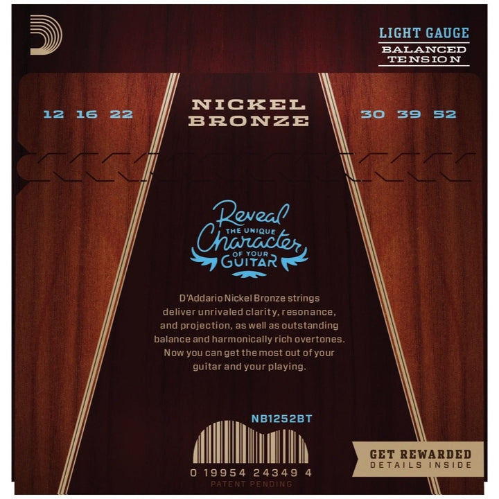 D'Addario NB1252BT Light Nickel Bronze Balanced Tension Acoustic Guitar Strings
