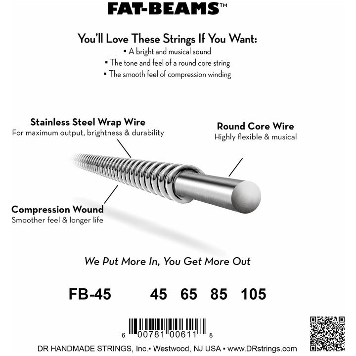 DR Strings FB-45 Fat-Beams Medium Electric Bass Strings, 45-105