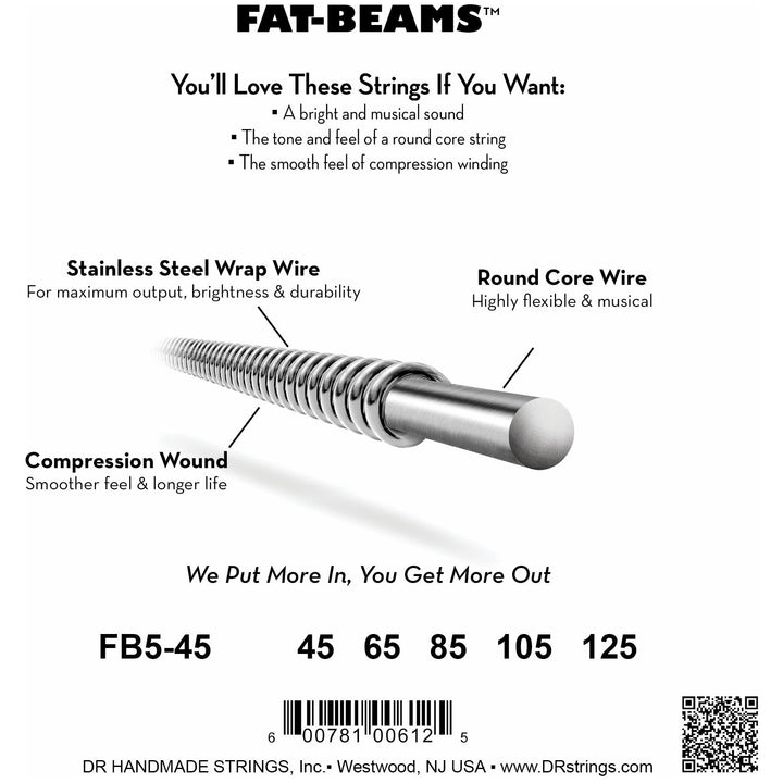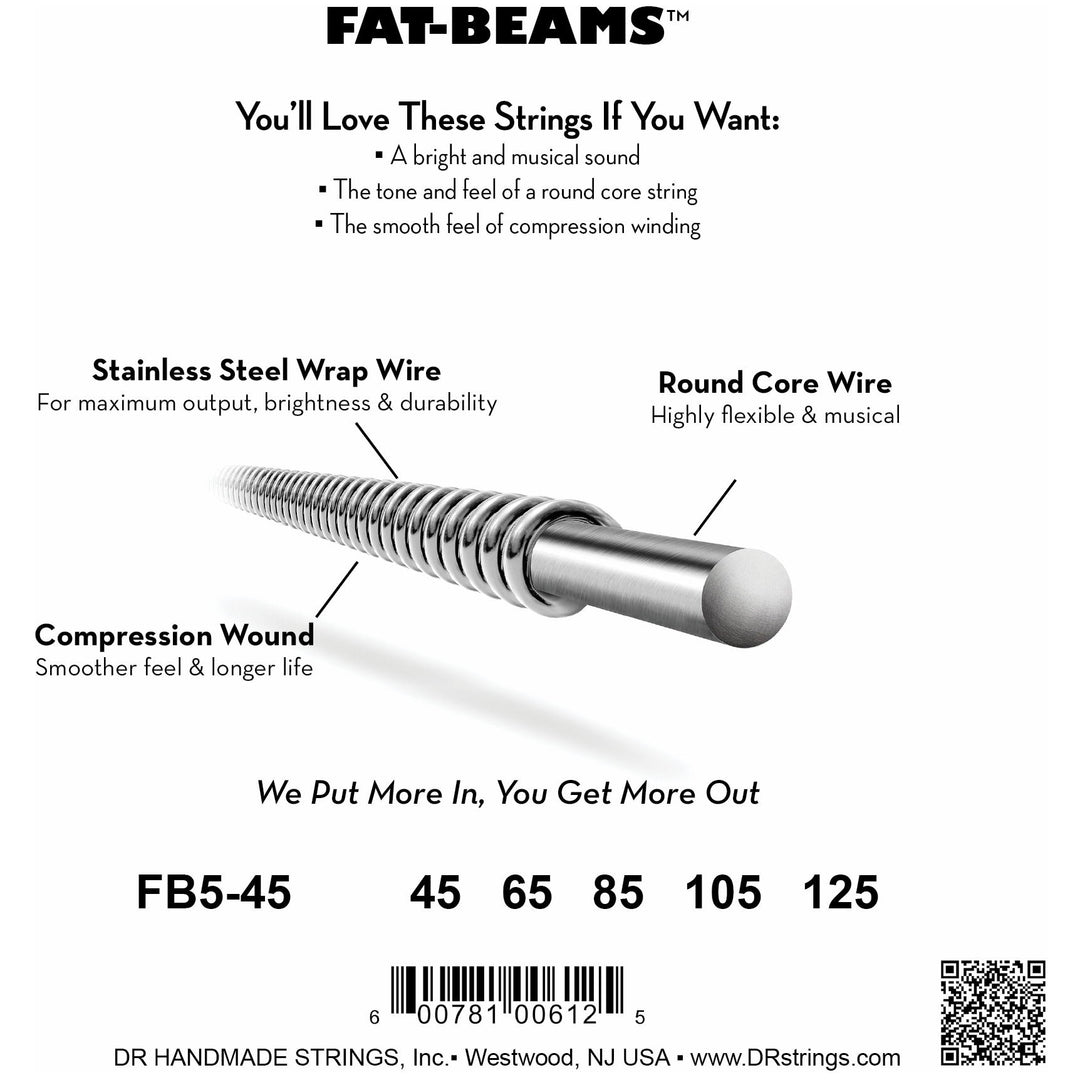 DR Strings FB5-45 Fat-Beams 5-String Medium Electric Bass Strings, 45-125