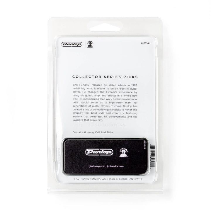 The Dunlop Jimi Hendrix Collector Series Picks commemorate one of the most influential guitar players in music history. Dunlop partnered with Authentic Hendrix, LLC and iconic photographer Gered Mankowitz to bring you a line of heavy gauge Genuine Celluloid Picks that embody the master guitar player’s visionary spirit and style.