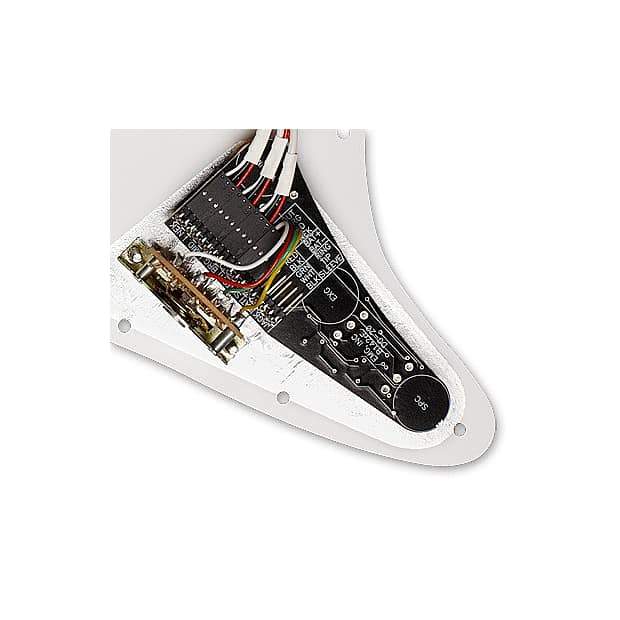 David has used this same EMG System for close to 15 years on his main red Strat. The DG20 comes with ivory SA single coil pickups, wired with an EXG Guitar Expander, an SPC Presence Control, and master volume all on a deluxe White Pearl pickguard with white knobs.The SA single-coil pickups feature Alnico magnets which give a full round tone with an accentuated mid range. The EMG-EXG Guitar Expander circuit increases the bass and treble while reducing the mids, perfect for chord definition at higher volumes. The SPC makes the SA's sing by boosting the mids and turning your single coils into full blown humbuckings. Now you can have the same pickups and tone accessories as David, but keep practicing if you want to get to the "Dark Side of the Moon".