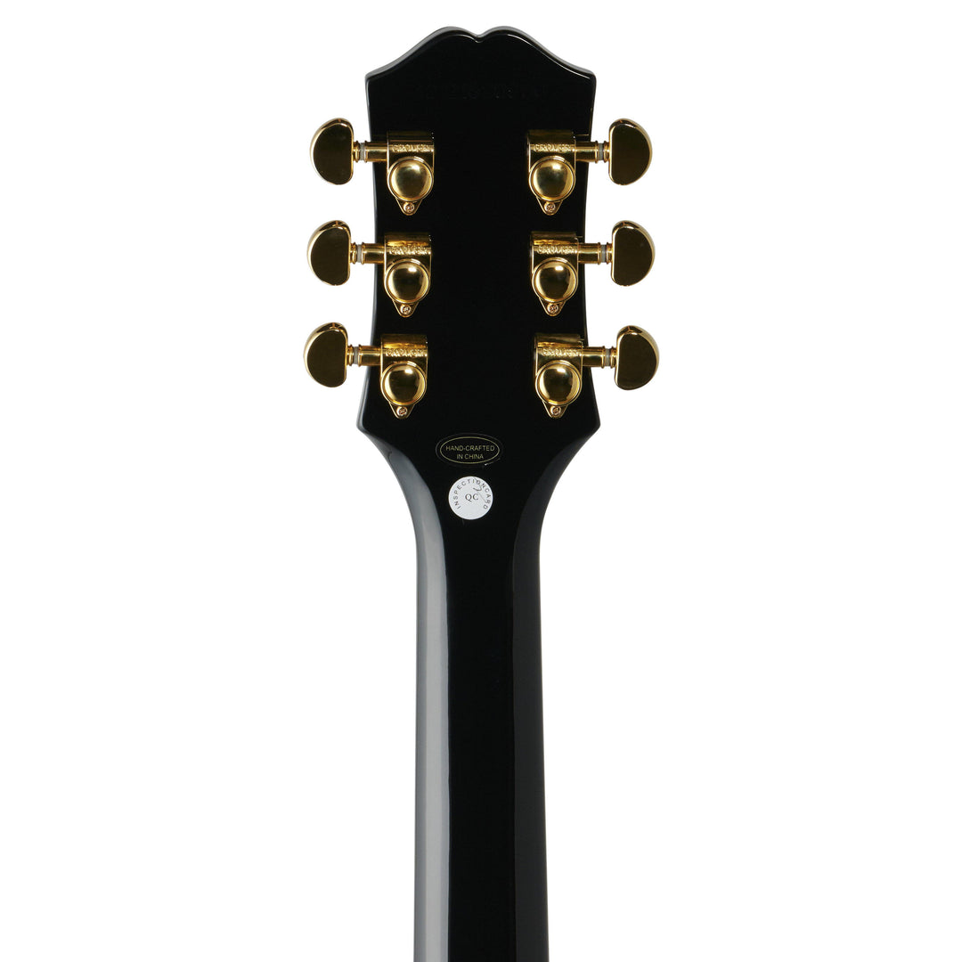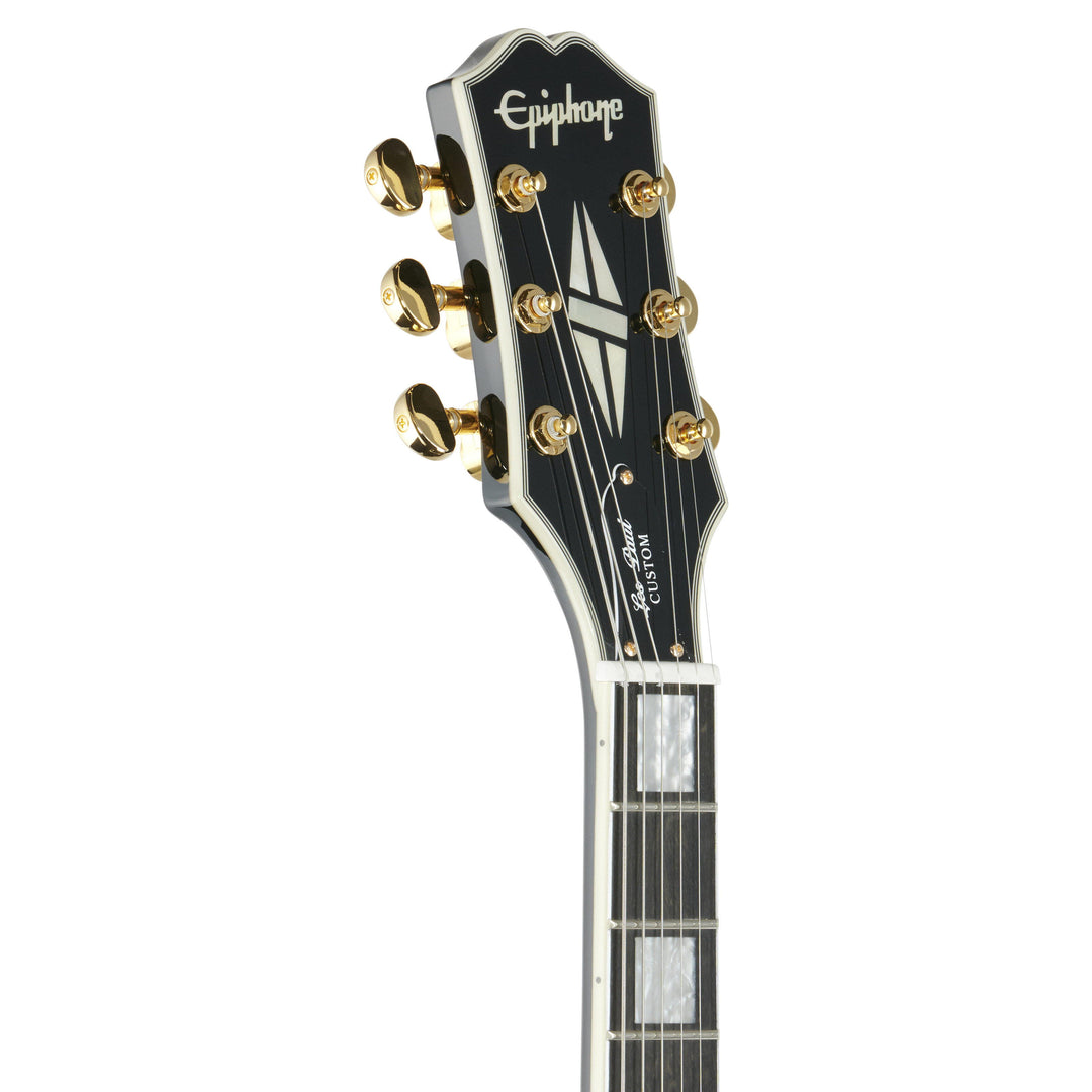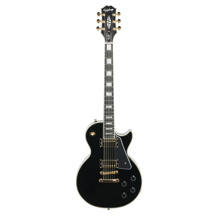 The new Les Paul Custom is part of Epiphone's Inspired by Gibson Collection and honors the 1950s classic designed by Mr. Les Paul in 1954 as the "tuxedo" version of his groundbreaking solid body masterpiece. Featuring a traditional Custom-style Mahogany body and Ebony fingerboard, gold hardware, critically acclaimed ProBucker humbuckers with CTS electronics, Grover machine heads, and Custom style inlay