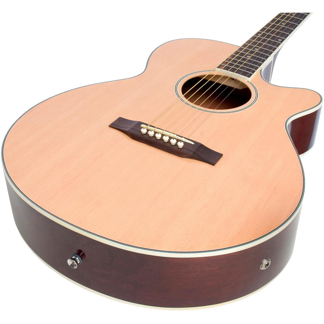 Epiphone introduces their first-ever acoustic-electric player package featuring everything you need to get started. At the heart of this all-in-one package is the PR-4E acoustic-electric guitar with select Spruce top and Mahogany back and sides. An Acoustic-15 amplifier provides you with 15 watts of power, 3-band EQ, and Chorus. Free downloadable eMedia Guitar lessons included with pack.