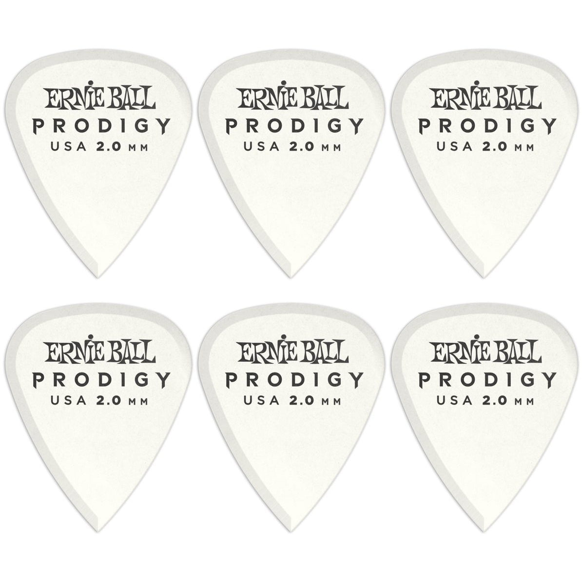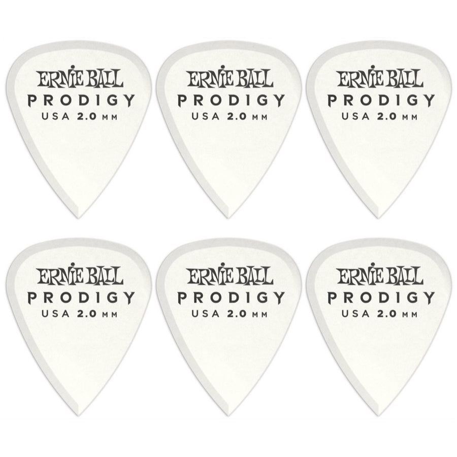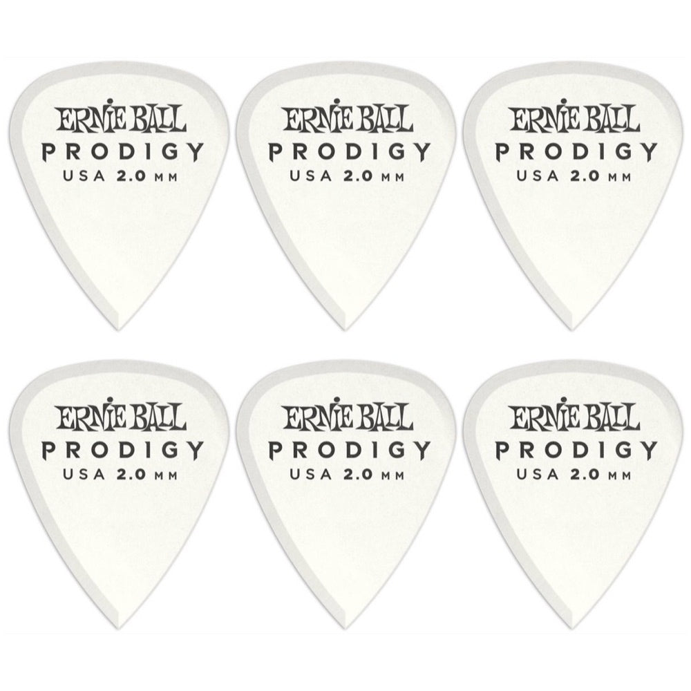 Ernie Ball Prodigy Standard Guitar Picks (6-Pack), White, 2.0mm