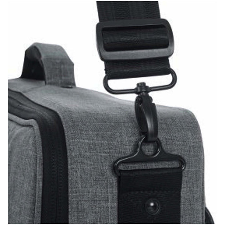 - Large front and rear external storage pockets for small items, cables, manuals, etc.