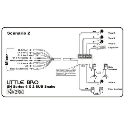 Hosa Little Bro Snake (XLR x 6, 1/4 Inch TRS x 2), SH6220, 20 Foot