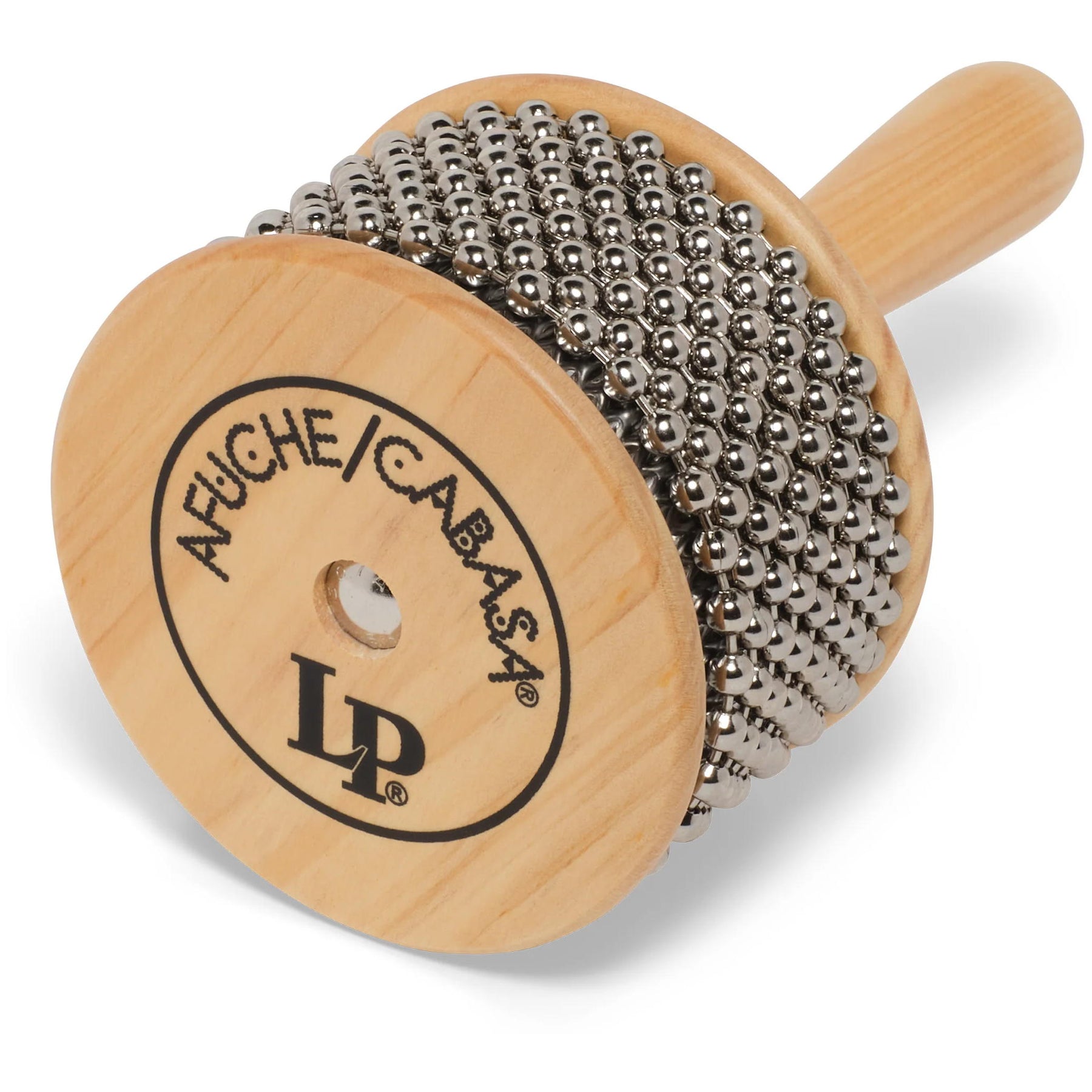 Developed and introduced over 40 years ago by LP, the Afuche/Casaba has become one of the most recognizable percussion instruments in history. The Afuche/Cabasa features loops of steel bead chain wrapped around a textured, stainless steel cylinder to produce a multitude of signature and expressive scraping rhythmic patterns. *