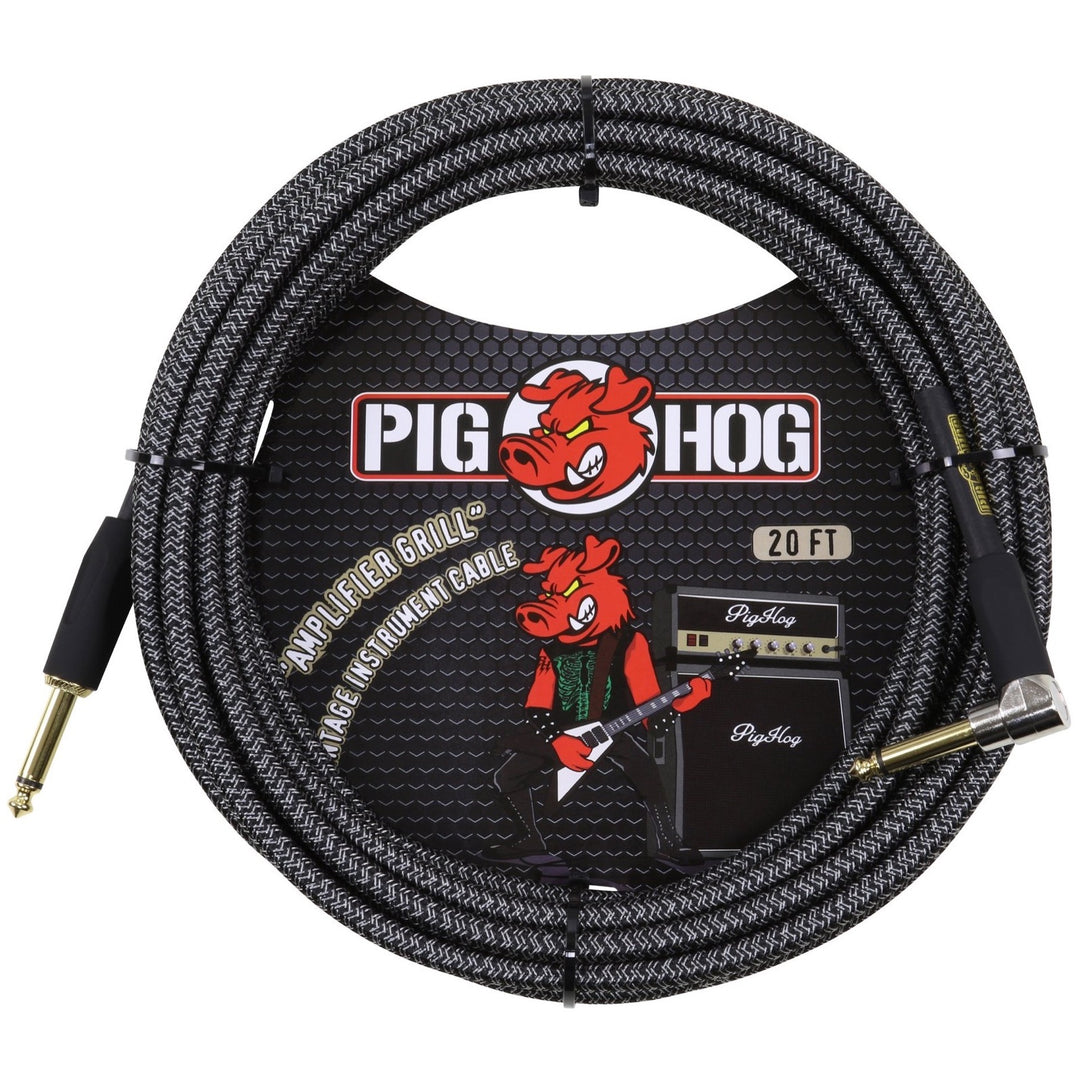 Pig Hog Color Instrument Cable, 1/4 Inch Straight to 1/4 Inch Right Angle, Amp Grill, 20'