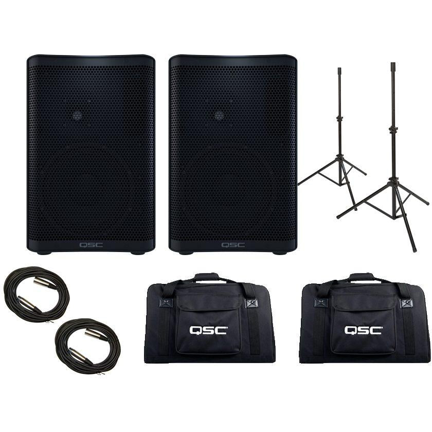 QSC CP8 Compact Active Loudspeakers - Pair with Bags, Stands & Cables
