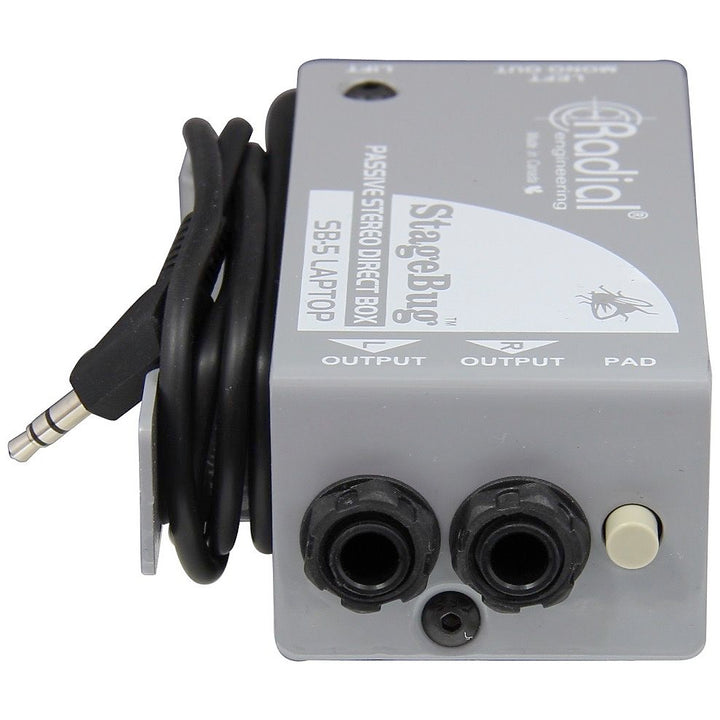 - is a perfect example. The Stage Bug SB-5 gives you the option to use a pair of 1/4" TRS outputs for stereo or an XLR output that automatically sums the left & right inputs to mono. This also saves valuable channels on the mixer.8. Field serviceableWith a hard-wired cable, you can be certain that it will eventually have to be replaced. The cable features a reusable strain relief plus an easy access solder points on the inside that make changing the cable a relatively simple affair that most audio techs can perform themselves.9. Made Radial ruggedAlthough compact, they did not compromise on the construction. The Stage Bug SB-5 is made Radial rugged. Pick it up and you get the same sense of quality that has made Radial DI boxes the most used on professional stages around the globe.10. Priced rightLast but not least, the price had to be right so that adding it to a work kit would be a no-brainer. The Stage Bug SB-5 represents tremendous value.When you combine all of these requirements and pack them into a super compact enclosure, you get a simple product that sounds great, does the job efficiently and is easy to deploy. It's called the StageBug SB-5.