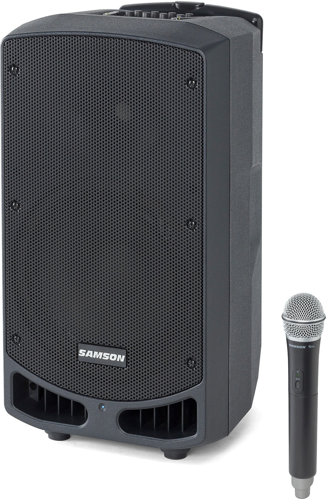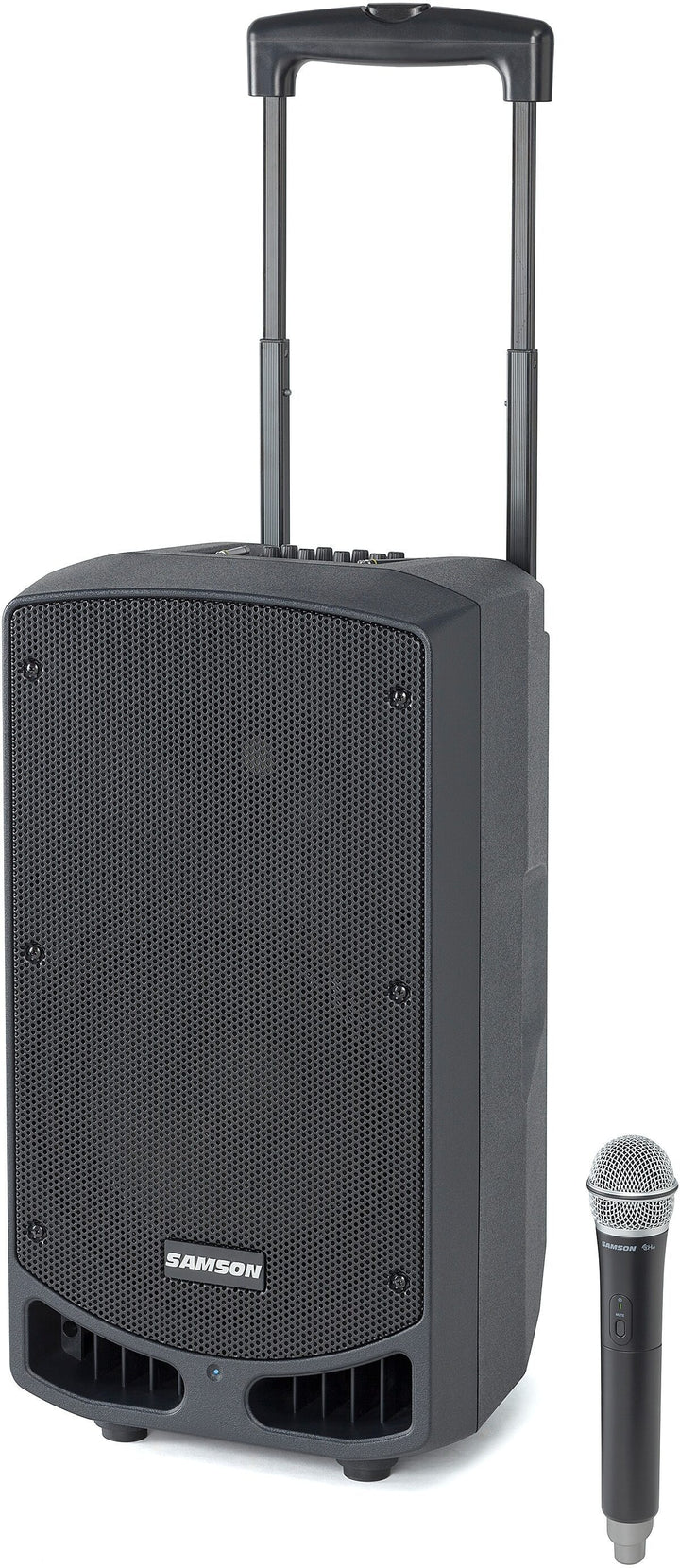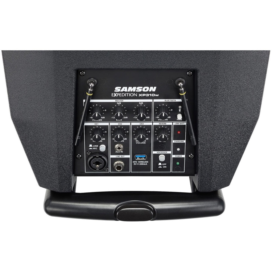 The Samson Expedition XP310w Rechargeable Portable PA answers the call of those who need great-sounding mobile audio. With 300 watts of power, 12 hours of battery life, a top-mounted 4-channel mixer and Bluetooth, the XP310w delivers huge sound to musicians, DJs or those enjoying a variety of outdoor events. It also includes a frequency-agile wireless microphone for cord-free performance.