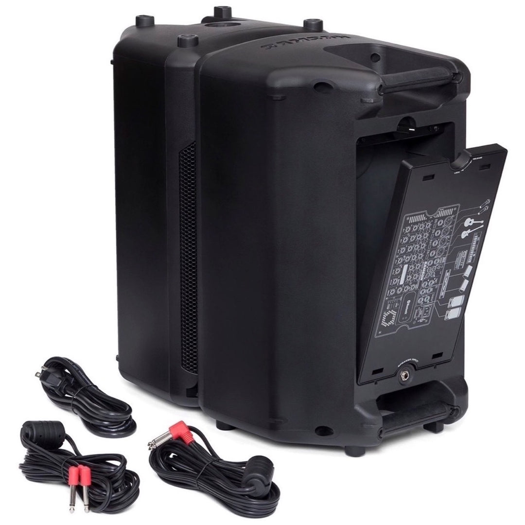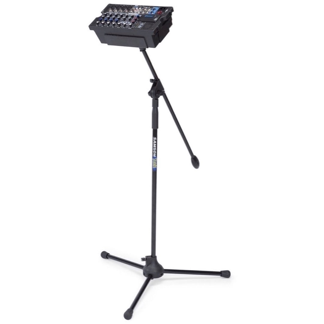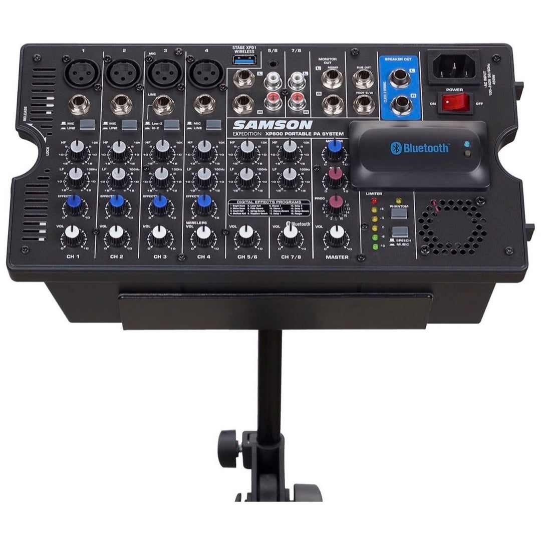 The Samson XP800's speaker enclosures feature a tilt-back design so they can be used as stage monitors as well as with 1 3/8" speaker stands. The mixer section can be removed and mounted on any standard mic stand using Samson's SMS308 Mixer Bracket (optional).