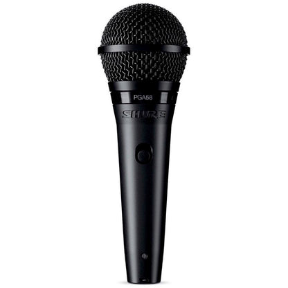 The Shure PGA58 Dynamic Vocal Microphone is a professional quality microphone featuring highly durable design and construction that delivers excellent sound. Ideal for use in lead and backup vocal performance applications, the PGA58 comes with an on/off switch, swivel adapter, and carrying pouch.