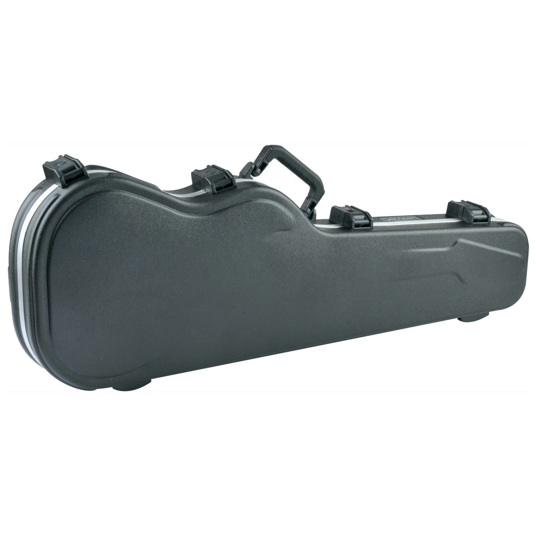 The SKB FS-6 case offers the ultimate in protection with SKB's famous molded-in bumper protection, molded-in feet and a fully plush lined EPS molded interior with an oversized compartment that will accommodate accessories. The SKB-FS-6 Shaped Standard Electric Guitar case has been modified to include trigger release locking latches with TSA accepted and recognized locks and also features SKB's injection molded cushioned rubber over-molded handle for a comfortable carry.
