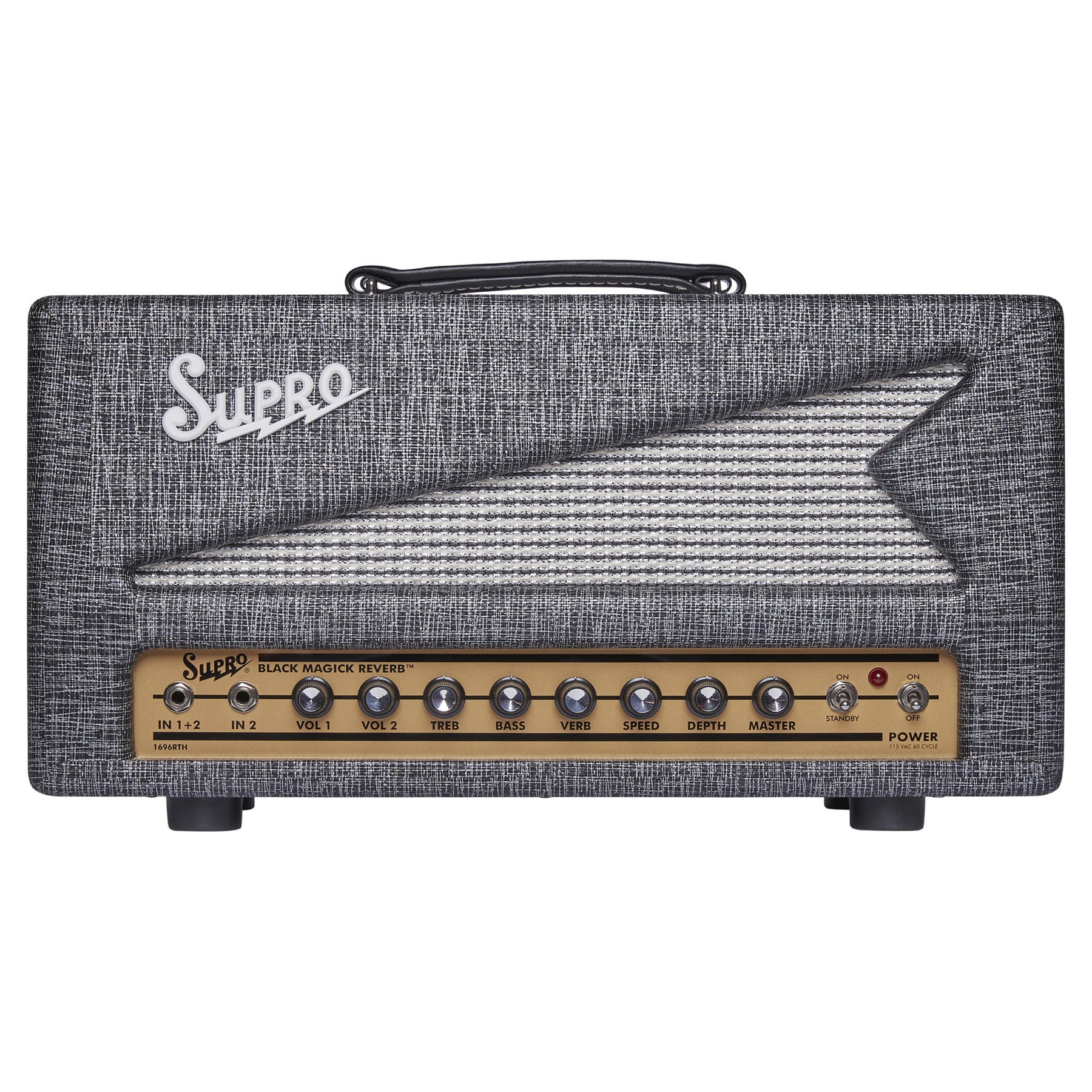The Black Magick Reverb Head embodies the all-tube snarl and sweetness that define the Supro sound. Featuring analog spring reverb, 2-band EQ, and a master volume knob, the Black Magick Reverb was designed with maximum flexibility in mind. Two independent preamp channels can be linked together using the "1 + 2" input jack to obtain fat tone, while utilizing only Input 2 will yield a more agile sound. The Black Magick Reverb’s 3-spring reverb pan is driven by both channels and then summed with the dry signal just before the master volume control. An updated, tube-based LFO circuit provides bias-modulated output tube tremolo with double the speed range of the original Black Magick. Also available in combo format.