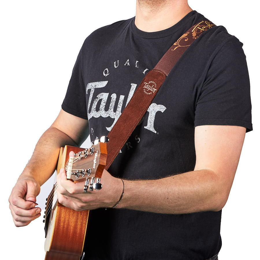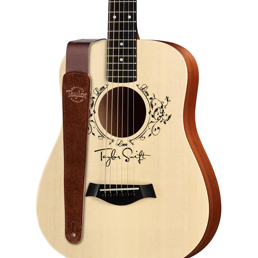 The perfect accessory for any guitar-strumming Taylor Swift fan. The two-inch-wide adjustable strap features a brown suede and polyester pairing for extra comfort and durability. Print elements include Taylor Swift's signature and floral/vine motif, both of which also grace the top of the Taylor Swift Baby Taylor.
