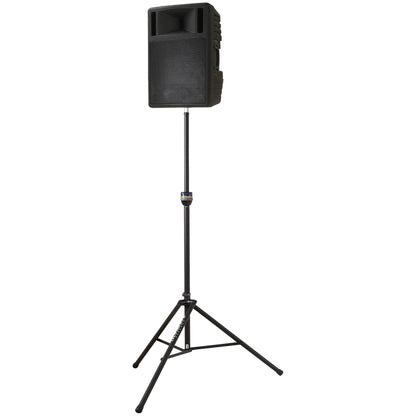 - 100% Field Serviceable PartsPatented TeleLock CollarThe TS-99B is one of the easiest speaker stands to use thanks to its patented TeleLock collar. Set the TeleLock collar to either the "Raise" or "Lower" setting and the Auto-lock technology provides just the right amount of resistance to allow you to raise or lower the speaker while locking the tube in place as you go. It's like having tour support built into your speaker stand!Extra HeightThe TS-90B is plenty tall enough for most normal situations. However, when you need to get your speaker, lighting tree, light truss, or whatever, up a little higher, the TS-99B is the perfect stand for you! The TS-99B adds about 26 inches of additional height and has a maximum height of 9 ft 2 in!Patented Tripod DesignThe TS-99B's offset tripod base design provides more support than typical "off-the-shelf" speaker stands. The design makes for very tight internal fittings, doing away with unnecessary sloppy leg problems, and includes a super strong die-cast metal collar that prevents over-tightening and breakage issues associated with all plastic designs.Over-sized Heavy Wall Aluminum TubingThe entire stand (legs, mast, and telescoping tube) uses oversized, heavy-walled aluminum tubing for durability, functionality, and weight savings. The TS-99B will not rust or corrode (thanks to its architectural anodized finish), is very smooth to operate, and is extraordinarily strong yet lightweight.100% Field Serviceable PartsFrom the foot caps on the bottom of the tripod legs all the way up to the speaker adapter at the top of the stand, the TS-99 is serviceable by parts as needed over its very long lifespan. In the unlikely event that something does break on the TS-99, simply replace with an affordable part instead of throwing the entire stand away and buying a whole new one!