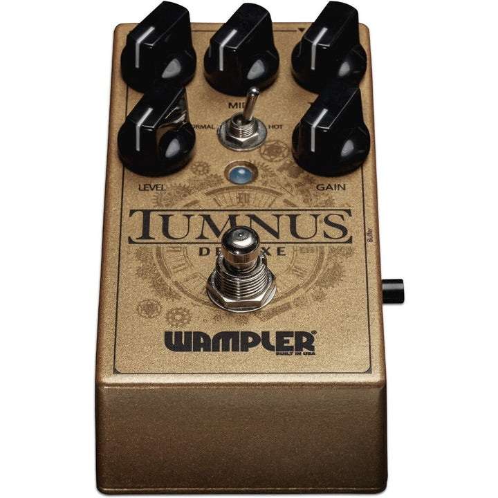 With the first iteration of the Tumnus, Wampler perfected their take on the sound of THE mythical overdrive. With the release of the Tumnus Deluxe, Brian has set the new standard. Thanks in large part to the design’s articulate-sounding buffer, all of the clarity, punch, and detailed breakup of the original Tumnus are still there. But if you prefer the sound of true bypass performance, just hit the switch on the side of the pedal for uncolored tonal purity. Brian also injected the Tumnus Deluxe with a level of tonal flexibility not previously available on this style of drive. Active bass and mid controls, as well as a treble control, the same as the pedal it was inspired by, encourages you to sculpt the tone from this pedal to the demands of your rig. Whether you’re boosting a driven amp or another pedal, using the pedal as a stand-alone overdrive, or crowning it your “always on” tonal sweetener, you’ll find the Tumnus Deluxe’s wide-ranging controls make it much more than just another clone.